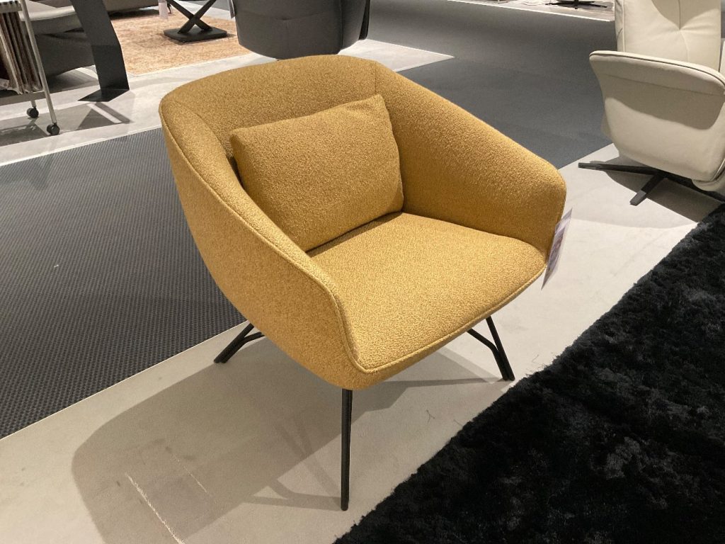 BemerkungDer HIMOLLA Loungesessel, Modell 7190, ist eine exquisite Ergänzung für jedes moderne Interieur. In einem eleganten Champagner-Gelb gehalten, bringt er einen Hauch von Raffinesse und Wärme in jeden Raum. Der Loungesessel ist aus hochwertigem Stoff gefertigt, der sowohl komfortabel als auch strapazierfähig ist, und bietet eine einladende Sitzfläche, die zum Entspannen einlädt. Die Maße von 76 x 80 x 73 cm machen ihn zu einem kompakten, aber dennoch auffälligen Möbelstück, das sich problemlos in verschiedene Wohnbereiche einfügen lässt. Abgerundet wird das stilvolle Design durch schwarze, mattierte Metallfüße, die dem Sessel Stabilität verleihen und zugleich einen modernen Akzent setzen. Als Ausstellungsware repräsentiert dieser Sessel die perfekte Balance zwischen Funktionalität und Ästhetik, ein Must-have für Kenner und Liebhaber von exquisitem Möbeldesign.