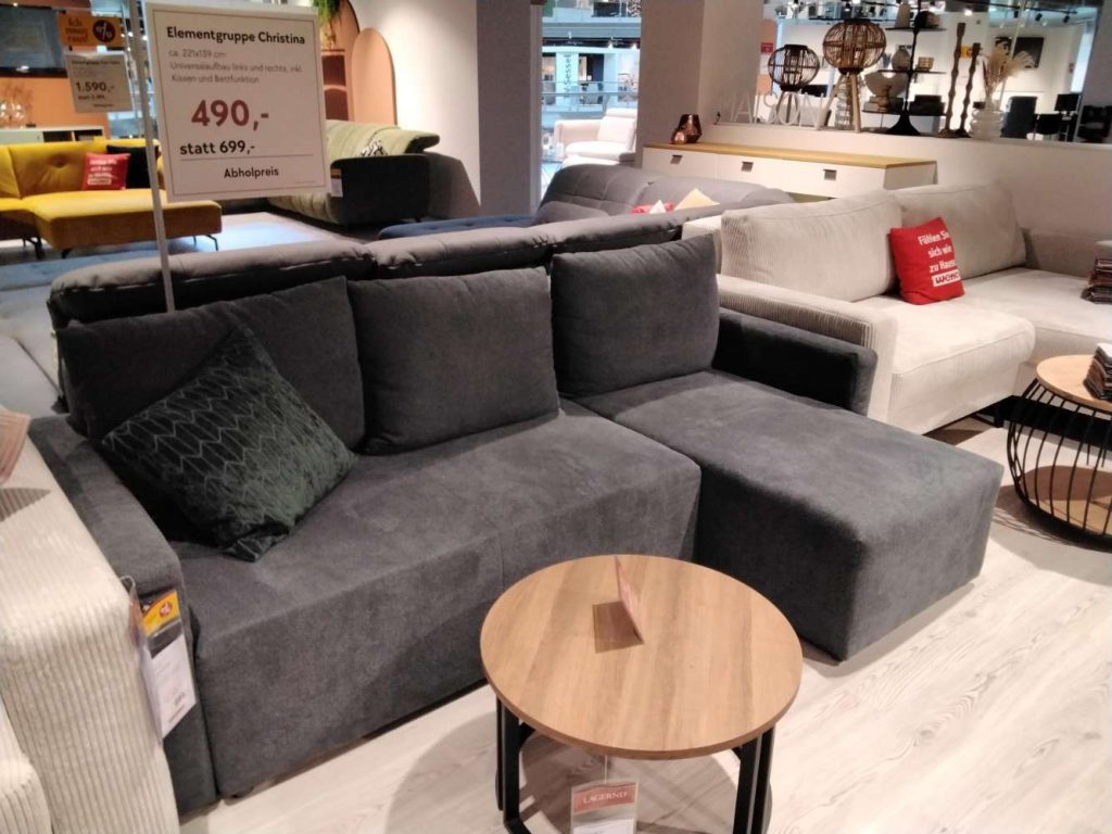 AusführungStellmaß ca. 221x139 cm, Universalaufbau links und rechts, komplett im Bezug Camaro 19 PG 1, Kunststofffüße Schwarz, inkl. 3 Rückenkissen, je ca. 68x43 cm
