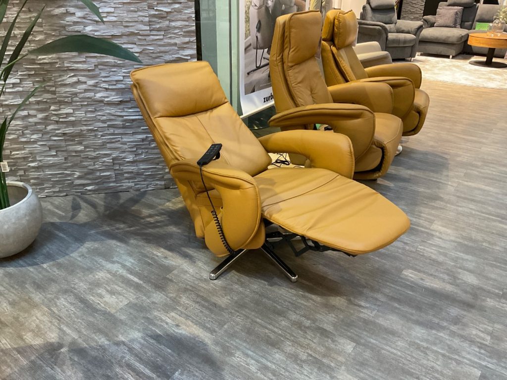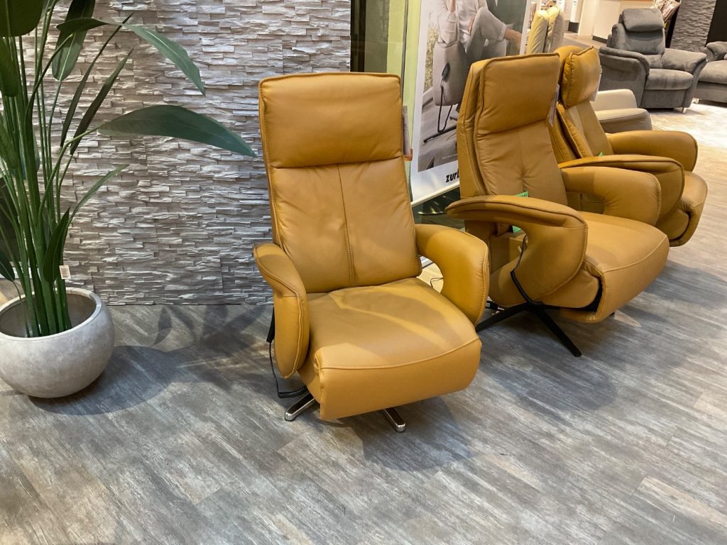 Bemerkung Der Relaxsessel ER04 in einem ansprechenden Kurkumaton ist nicht nur ein visuelles Highlight, sondern auch ein Meisterwerk des Komforts. Das Echtleder, hergestellt aus hochwertigem Leder Torro Kurkuma, sorgt für eine luxuriöse Haptik und überzeugt durch seine langlebigen und strapazierfähigen Eigenschaften. Mit der 2-motorischen Funktionalität ermöglicht der Sessel eine unabhängige Verstellung von Fuß- und Rückenteil, sodass Sie jederzeit Ihre ideale Sitz- oder Liegeposition finden können. Zusätzlich sorgt die elektrische Kopfteilverstellung für maximalen Komfort, indem sie Kopf- und Nackenbereich optimal unterstützt. Die glänzenden Sternfüße aus Metall verleihen dem Sessel einen modernen und eleganten Look, der sich perfekt in jedes stilvolle Wohnambiente integriert. Mit seinen kompakten Maßen von etwa 77 cm Breite, 108 cm Höhe und 87 cm Tiefe ist der ER04 eine ausgezeichnete Wahl für alle, die Design und Funktionalität in einem Möbelstück vereint sehen wollen. Selbst als Ausstellungsware verspricht dieser Relaxsessel höchste Qualität und ist bereit, Ihren Wohnbereich zu bereichern.