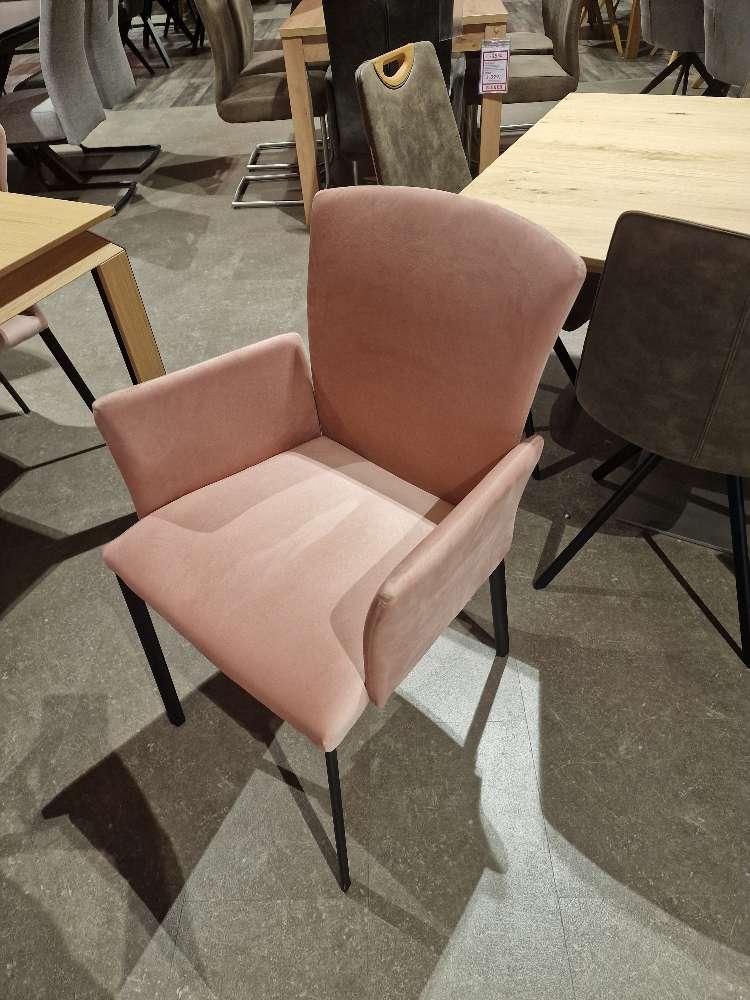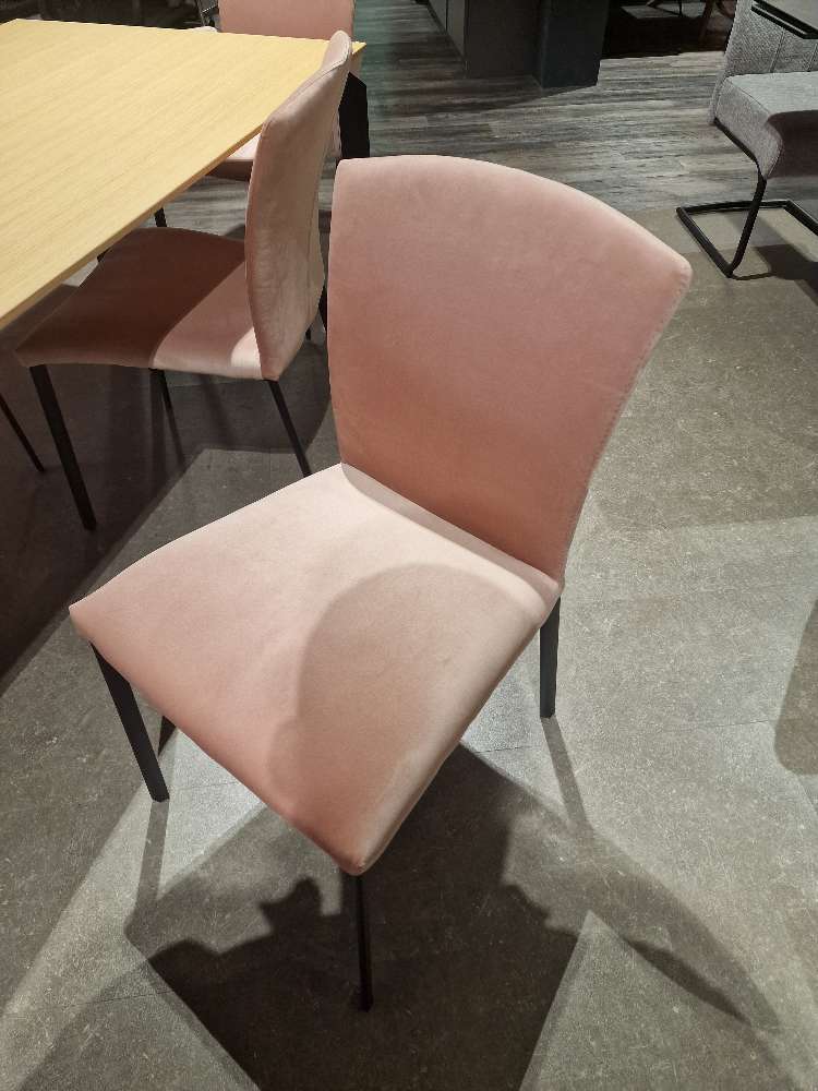 Farb-Beschreibung Esstisch: Eiche Satin Natur / Stühle: Stoff Kansas Pink