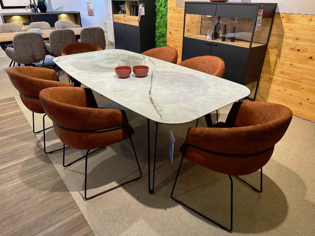 Begleitet wird dieses Schmuckstück von sechs luxuriösen Stühlen Maggie, die mit einem robusten Metallgestell ebenfalls in Anthrazit matt punkten. Mit einer komfortablen Sitzhöhe von 50 cm und einer Belastbarkeit von bis zu 140 kg bieten die Stühle nicht nur sichere Stabilität, sondern auch höchsten Sitzkomfort. Die perfekte Symbiose aus Form und Funktion macht dieses Ensemble zu einem unverzichtbaren Highlight in Ihrem Zuhause und unterstreicht Ihren Sinn für Stil und Qualität. Als Ausstellungsware präsentiert, bieten Tisch und Stühle ein einmaliges Preis-Leistungs-Verhältnis, das sich vor allem durch ihre makellose Verarbeitung und langlebige Materialien auszeichnet.