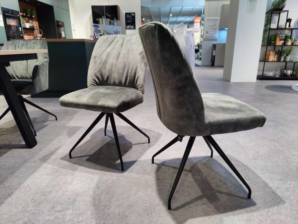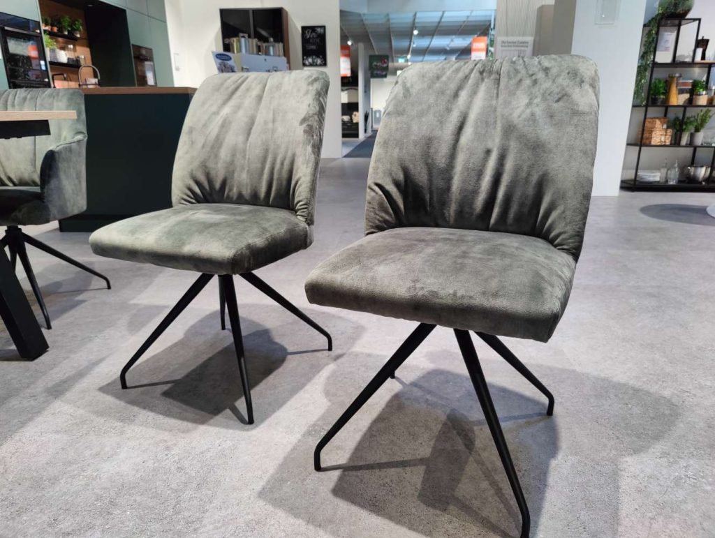 BemerkungEntdecken Sie die elegante Essgruppe IL 5110 von INTERLIVING, die Ihrem Esszimmer nicht nur stilvolle Akzente verleiht, sondern auch praktische Funktionen bietet. Die edle Farbgebung "Forest" bringt eine natürliche Frische in Ihren Raum, während das samtig-weiche Material für außergewöhnlichen Komfort sorgt. Herzstück dieser Essgruppe sind zwei Sessel mit exklusiver Drehfunktion, die Flexibilität und Bewegungsfreiheit am Tisch ermöglicht. Ergänzt wird das Ensemble durch vier stilvolle Stühle, die in ihrer Schlichtheit die Attraktivität der Essgruppe unterstreichen. Die robusten schwarzen Metallfüße verleihen den Möbelstücken nicht nur eine stabile Basis, sondern setzen zudem einen modernen Kontrast zum luxuriösen Finish des Stoffes. Ob für gesellige Abendessen oder entspannte Momente in kleiner Runde, die IL 5110 Essgruppe bietet den perfekten Rahmen für Ihre Zusammenkünfte. Als Ausstellungsware verbindet sie ein unschlagbares Preis-Leistungs-Verhältnis mit gehobenem Designanspruch.
