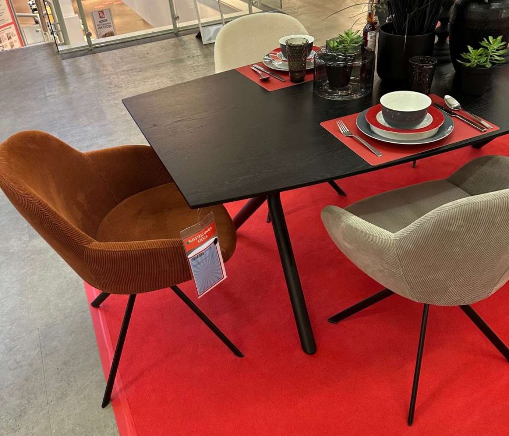 Bemerkung Tauchen Sie ein in die exquisite Welt von NIEHOFF mit dem Dacapo Esstisch-Set, das sich perfekt für stilvolle Zusammenkünfte eignet. Der Esstisch beeindruckt mit einer eleganten Tischplatte aus echtholzfurnierter Eiche, die eine warme, natürliche Ausstrahlung verleiht. Das Soft-X Metallgestell in Schwarz sorgt für eine moderne, industrielle Note und bietet gleichzeitig Stabilität. Die einzigartige Bootsform des Tisches, mit einer großzügigen Größe von circa 220x100 cm, macht ihn zum Blickfang in jedem Raum. Begleitet wird der Tisch von einer exquisiten Auswahl von sechs Stühlen, die in ihrer Vielfalt und Eleganz nicht zu übertreffen sind. Jeder Stuhl ist in hochwertigem Cordstoff aus der Fjord-Kollektion gehalten, wobei die Farben anthrazit, copper und green mit einem stabilen, nicht drehbaren Stativ-Gestell aus schwarzem Eisen versehen sind. Diese Farben verleihen dem Set eine harmonische, doch lebhafte Palette. Die Farben apricot, creme und grey bieten zusätzlich einen Hauch von Flexibilität mit ihrer 180-Grad-Drehbarkeit und einer praktischen Rückholfunktion, die ein bequemes Nachjustieren beim Sitzen ermöglicht. Diese Kombination aus hochwertigen Materialien und durchdachtem Design von NIEHOFF macht das Dacapo-Set zur idealen Wahl für alle, die in ihrem Essbereich sowohl Komfort als auch Stil suchen.