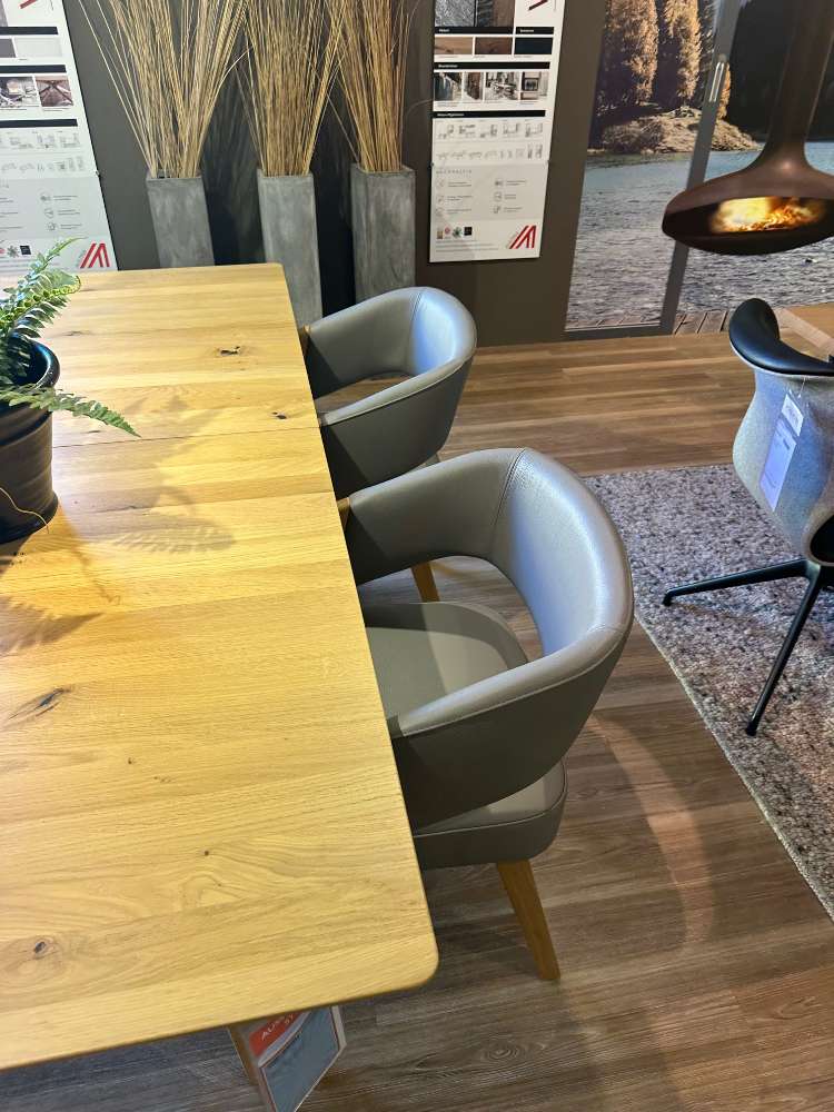 Ergänzend dazu runden zwei stilvolle Stühle mit anthrazitfarbenem Lederbezug und Kaltschaum-Sitz den Essbereich ab. Ihr schlankes Design von 55 x 81 cm bietet mit einer Sitzhöhe von 50 cm und einer Sitztiefe von 47 cm den perfekten Sitzkomfort. Lassen Sie sich vom hochwertigen Design des Herstellers Voglauer verzaubern und gestalten Sie Ihr Zuhause mit Vcuben living zu einem Ort der Begegnung und des Genusses.