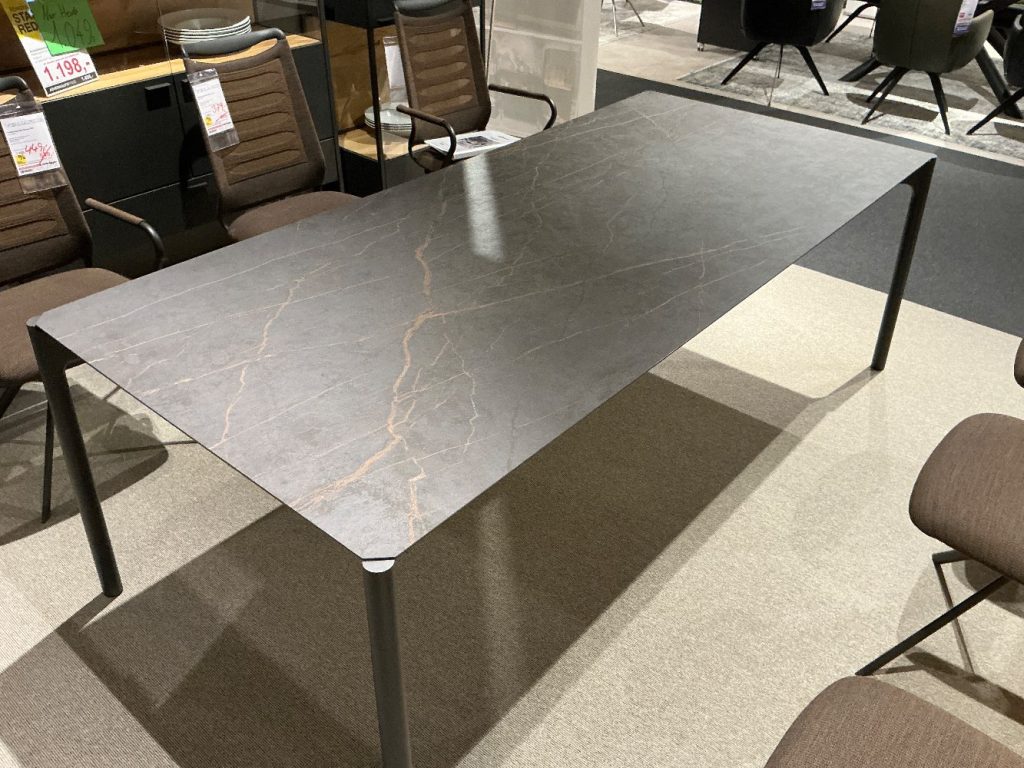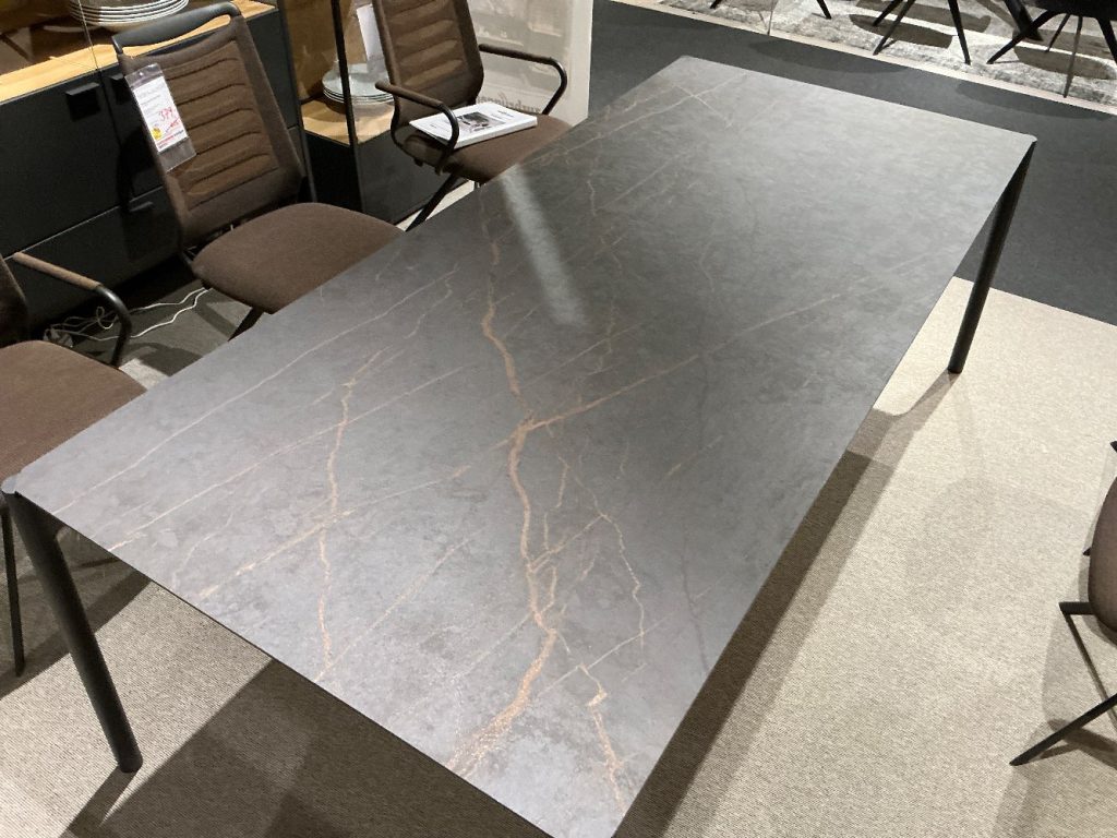 BemerkungDer ET236 MIO PLUS von VENJAKOB ist ein herausragendes Möbelstück, das durch seine einzigartige Kombination aus Ästhetik und Funktionalität begeistert. Mit seiner großzügigen Maße von 220 cm in der Breite, 75 cm in der Höhe und 100 cm in der Tiefe bietet dieser Tisch genügend Platz für gesellige Runden und stilvolle Dinner-Abende. Die Tischplatte in Dekon Laurent verleiht dem Modell eine edle und zugleich moderne Optik, während das anthrazit matte Metallgestell für einen stabilen Stand und eine zeitgemäße Ausstrahlung sorgt. Als Ausstellungsware ist dieses Modell nicht nur ein optisches Highlight, sondern auch ein Garant für Qualität und Langlebigkeit. Jeder Blick und jede Berührung offenbaren die Detailverliebtheit und das handwerkliche Können, die in das Design eingeflossen sind. Ideal für alle, die Wert auf hochwertige Materialien und raffinierte Designlösungen legen. Der ET236 MIO PLUS bringt Eleganz in jeden Raum, ohne aufdringlich zu wirken, und wird zum Mittelpunkt jedes stilvollen Wohnambientes.