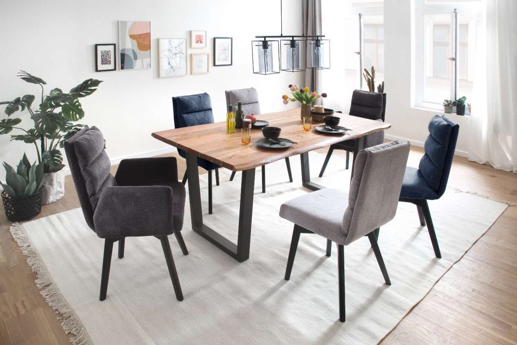 Esstisch Platte Akazie massiv, Gestell Metall antik, B/H/T ca. 160x78x90 cm.