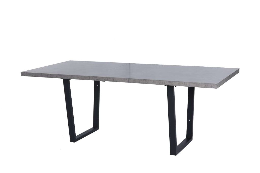 Esstisch mit Platte in Beton-Optik, Metallgestell schwarz, ca. 160x90 cm, ausziehbar auf ca. 200 cm.