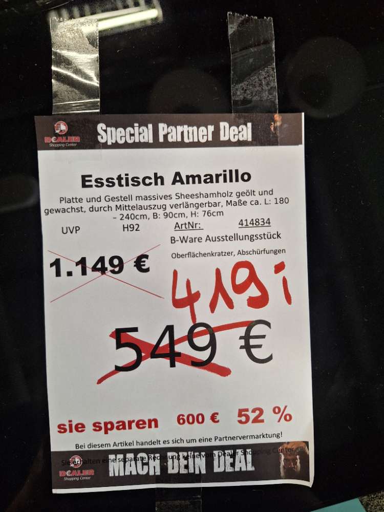Esstisch Amarillo Sheesham massiv verlängerbar statt 1149 €