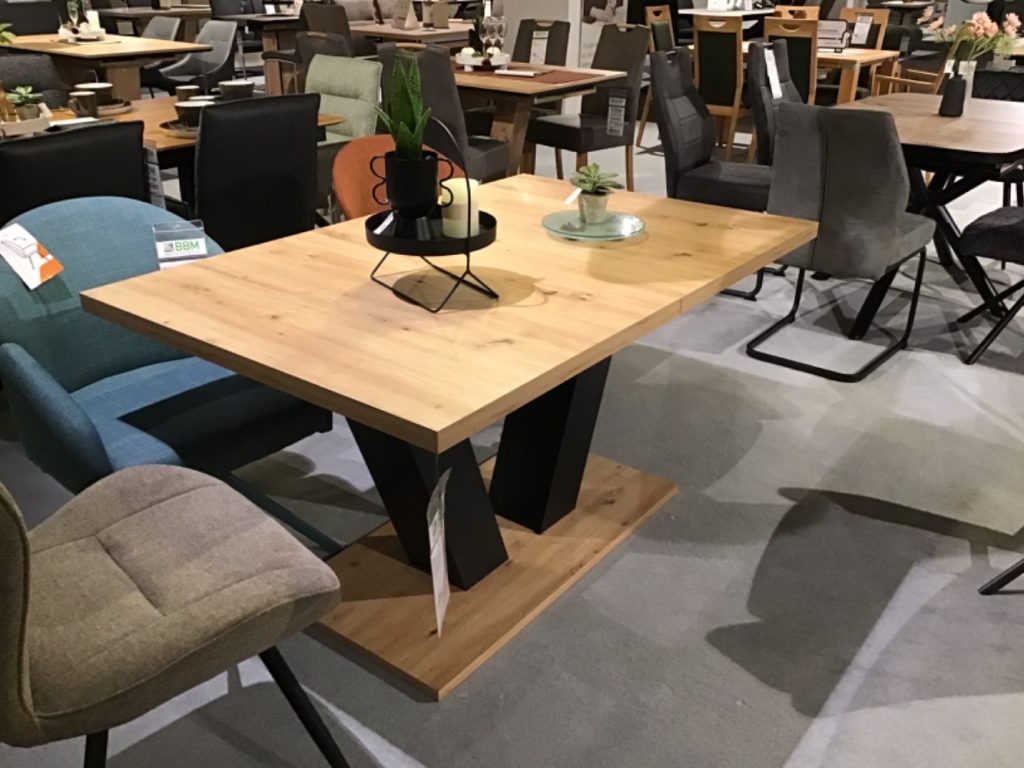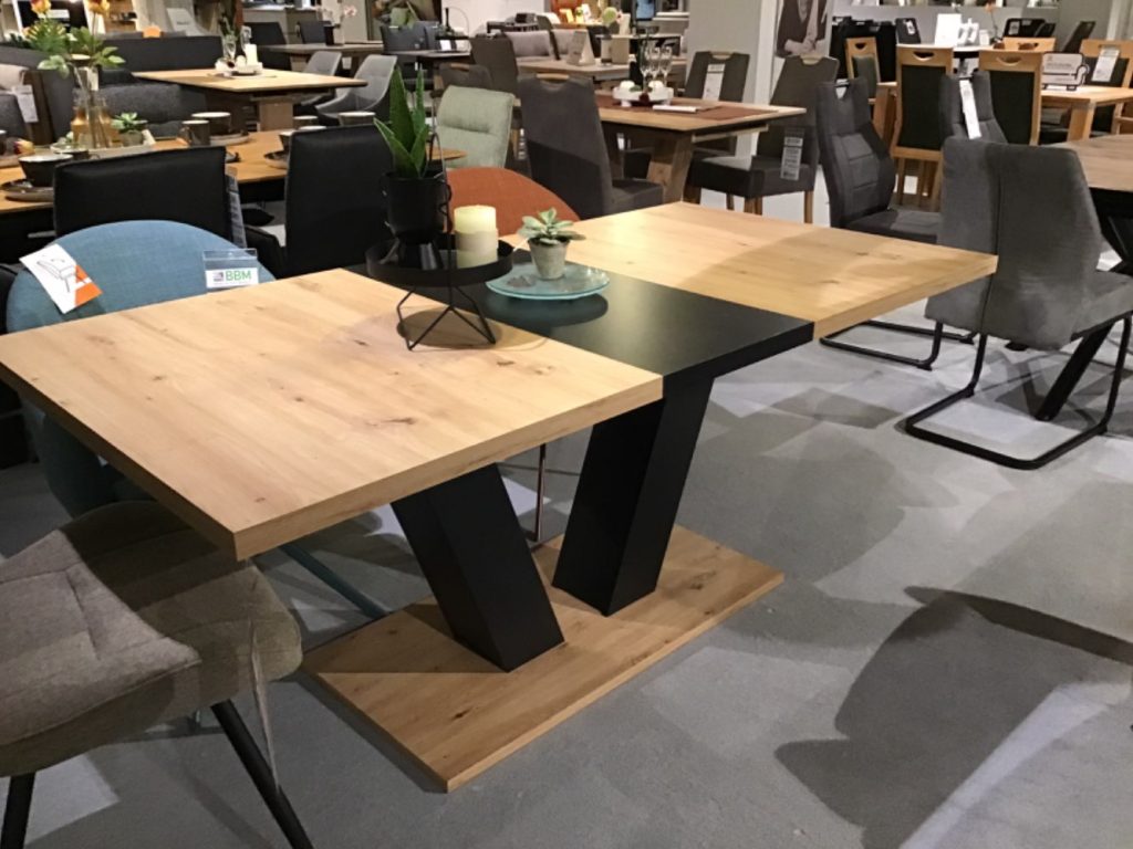 Moderner Esstisch ausziehbar in der Farbkombinationen Eiche/schwarz.
