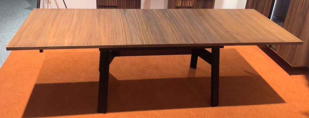 BemerkungDer Esstisch "Hamburg" von DIE HAUSMARKE beeindruckt durch seine elegante Schlichtheit und hochwertige Verarbeitung. Aus massivem Nussbaum gefertigt und mit einer geölten Oberfläche veredelt, strahlt er natürliche Wärme und zeitlose Schönheit aus. Der Tisch misst kompakte 160 cm, lässt sich jedoch dank einer cleveren Ausziehfunktion mühelos auf ca. 205 cm erweitern, was ihn zur idealen Lösung für sowohl alltägliche Mahlzeiten als auch gesellige Abende mit Gästen macht. Die Füße aus Metall verleihen dem Möbelstück einen modernen Touch und sorgen für Stabilität und Langlebigkeit. Als Ausstellungsware zeigt der Tisch "Hamburg" höchste Handwerkskunst und bringt sowohl Funktionalität als auch Stil in Ihr Zuhause. Perfekt für Liebhaber von hochwertigen Holzmöbeln, die Wert auf Flexibilität und Design legen.