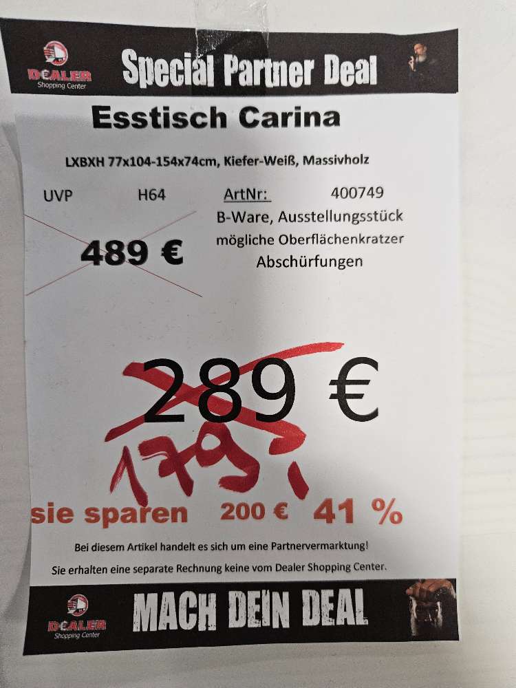 Bemerkung Mach deinen Deal! Hierbei handelt es sich um ein Angebot vom Dealer Shopping Center! Standort des Artikels ist Zeitz Kretzschau. Details wie technische Daten oder Schäden entnehmen Sie dem Bild mit Preis. BEZAHLUNG:  Bargeld, EC-Kartenzahlung, Kreditkarte oder 0% Finanzierung mit Consors Bank. RESERVIERUNG: Bei einem längeren Anfahrtsweg und vorheriger Absprache mit dem Verkäufer vor Ort ist eine Reservierung, für die Dauer der Fahrt -maximal  jedoch für 4 Stunden- möglich. Von Sonderanfragen bitten wir abzusehen. WICHTIG Bitte telefonisch erfragen ob der Wunschartikel noch verfügbar ist. Zwischenverkauf vorbehalten. Die Besichtigung, der Verkauf und die Abholung erfolgt ausschließlich bei unserem Handelspartner. Dealer Shopping Center , 06712 Kretzschau Zeitz Grana, Leipziger Straße 18, Ihren Ansprechpartner erreichen Sie telefonisch unter 015906377060 Öffnungszeiten : MO-FR 9:00-18:00 Uhr, SA 9:00 – 14:00 Uhr. Alle Inserate sind unverbindlich. Preisirrtümer und Änderungen vorbehalten. Abbildung ähnlich. Mehrere Rabattaktionen sind nicht kombinierbar. Weitere sichtbare Artikel können bei Verfügbarkeit zusätzlich erworben werden!