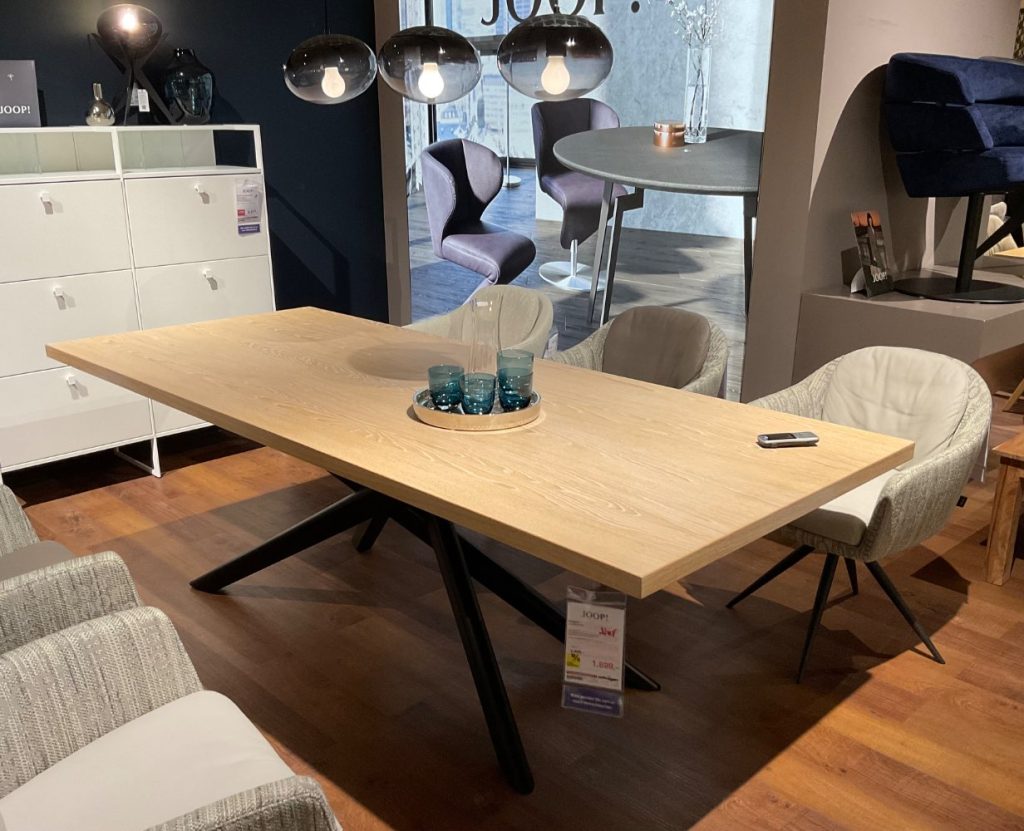 BemerkungDer Esstisch Characters Type 5558-1G von JOOP bietet eine harmonische Kombination aus natürlicher Eleganz und moderner Ästhetik. Mit einer großzügigen Größe von 240 x 75 x 100 cm eignet er sich perfekt für gesellige Abende und gemeinsame Mahlzeiten. Die Platte aus Wildeiche furniert besticht durch ihre gekälkt lackierte Oberfläche, welche die charakteristischen Holzmaserungen besonders hervorhebt und dem Tisch eine warme, einladende Ausstrahlung verleiht. Das schwarze Gestell aus Buche bringt einen modernen Kontrast ins Design, wodurch der Tisch nicht nur robust und stabil, sondern auch stilvoll und ansprechend wirkt. Als Ausstellungsware von JOOP, einem renommierten Hersteller aus Kreuzlingen, vereint dieser Tisch höchste Qualität mit einem unverwechselbaren Design. Ob im Esszimmer oder als Hingucker im offenen Wohnbereich, der Characters Type 5558-1G zieht alle Blicke auf sich und lädt zu unvergesslichen Momenten ein.