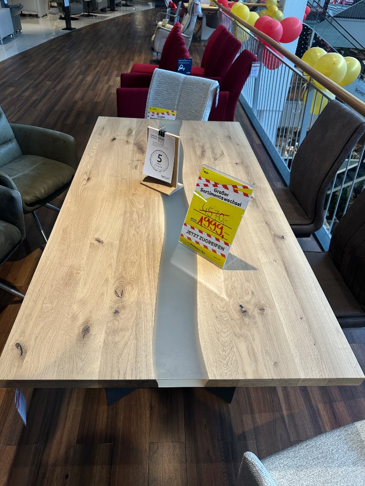Bemerkung Esstisch mit fester Platte Platte: Kerneiche Natur gebürstet Gestell: Holz Anthrazit Tischkante mit geradem Kantenprofil