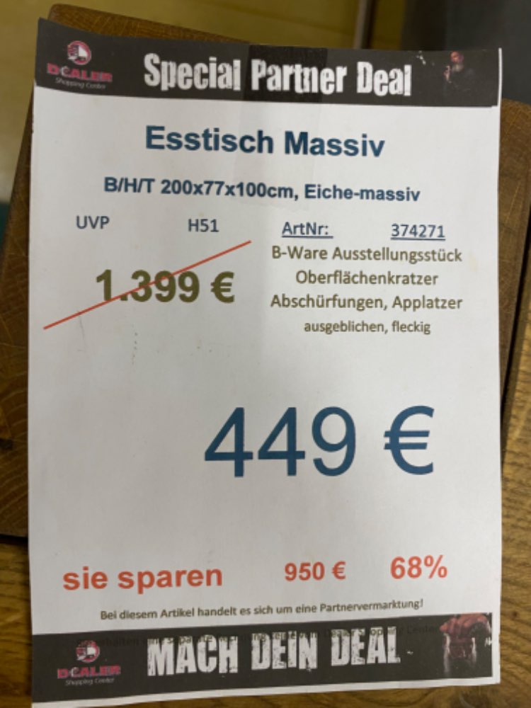 Esstisch / Küchentisch / Tisch massiv statt 1399€