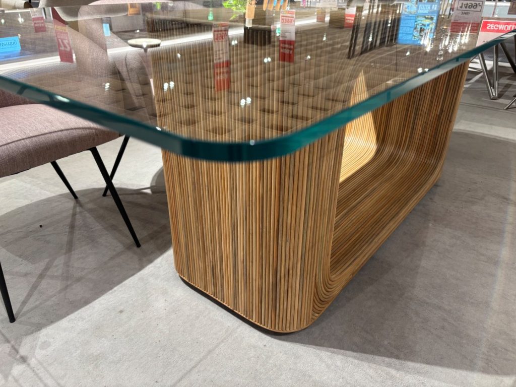 Esstisch Tischplatte gehärtetes Glas klar, Gestell: Rattan lackiert, Belastbarkeit max. 100 kg,