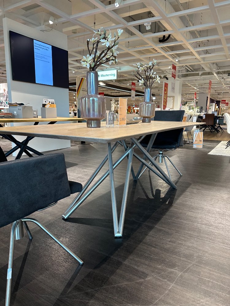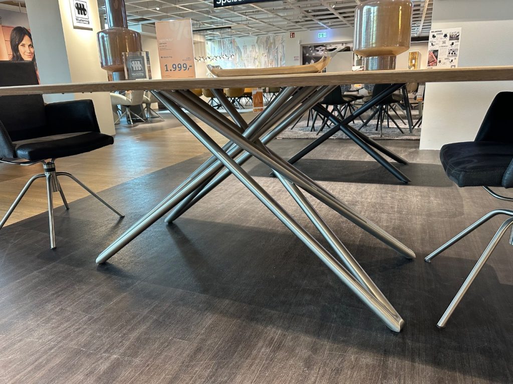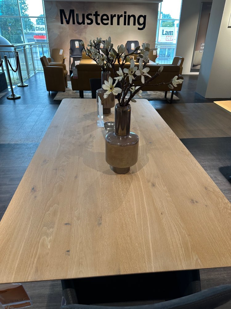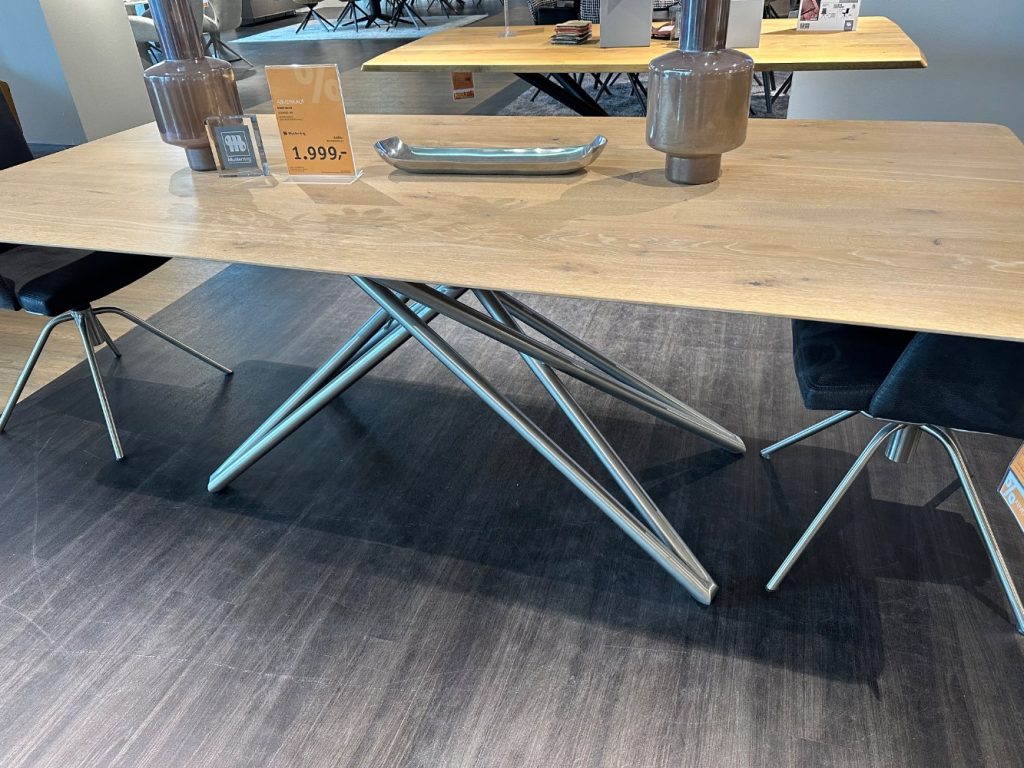 Tischplatte Wildeiche weiss geölt und Edelstahl gestell in Matt
