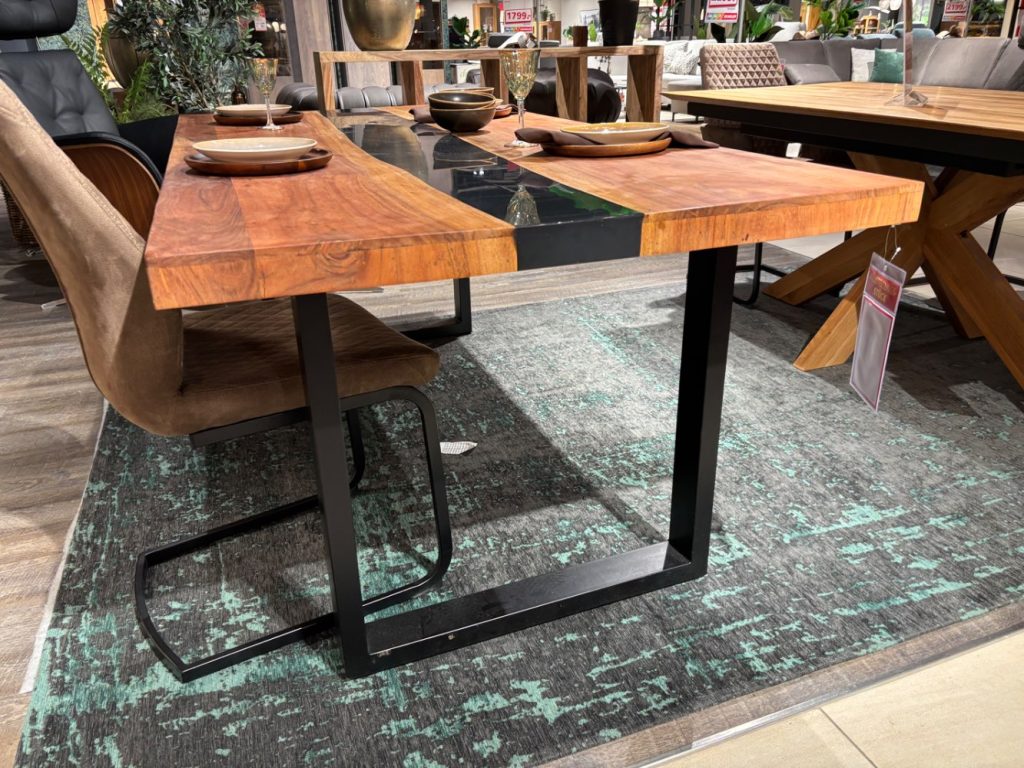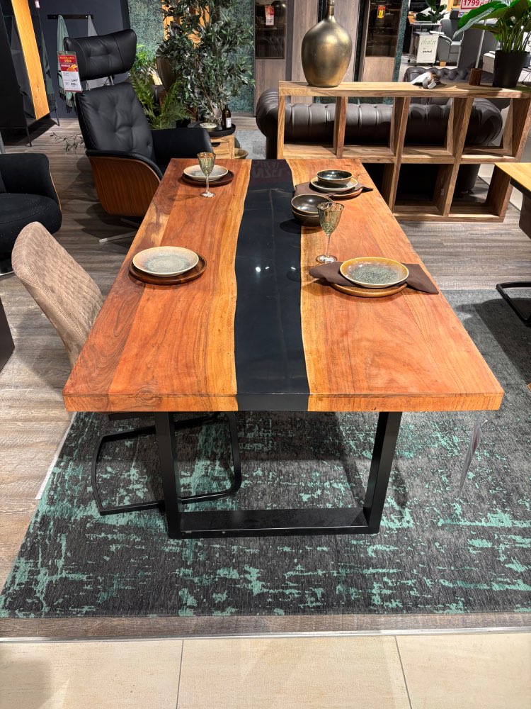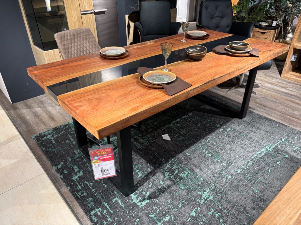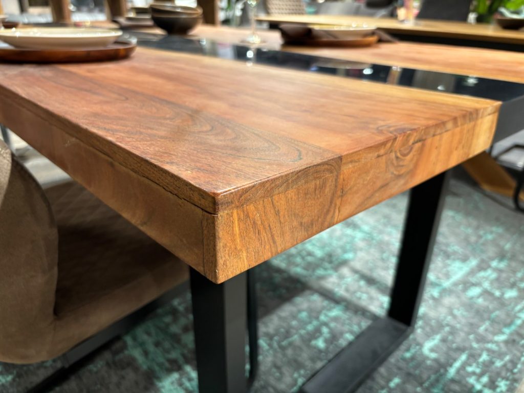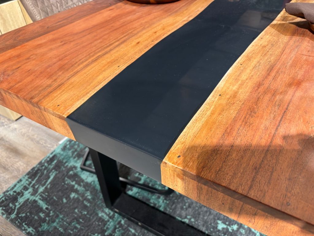 Esstisch in Akazie massiv, Absetzung: Resin, Gestell Eisen schwarz,
