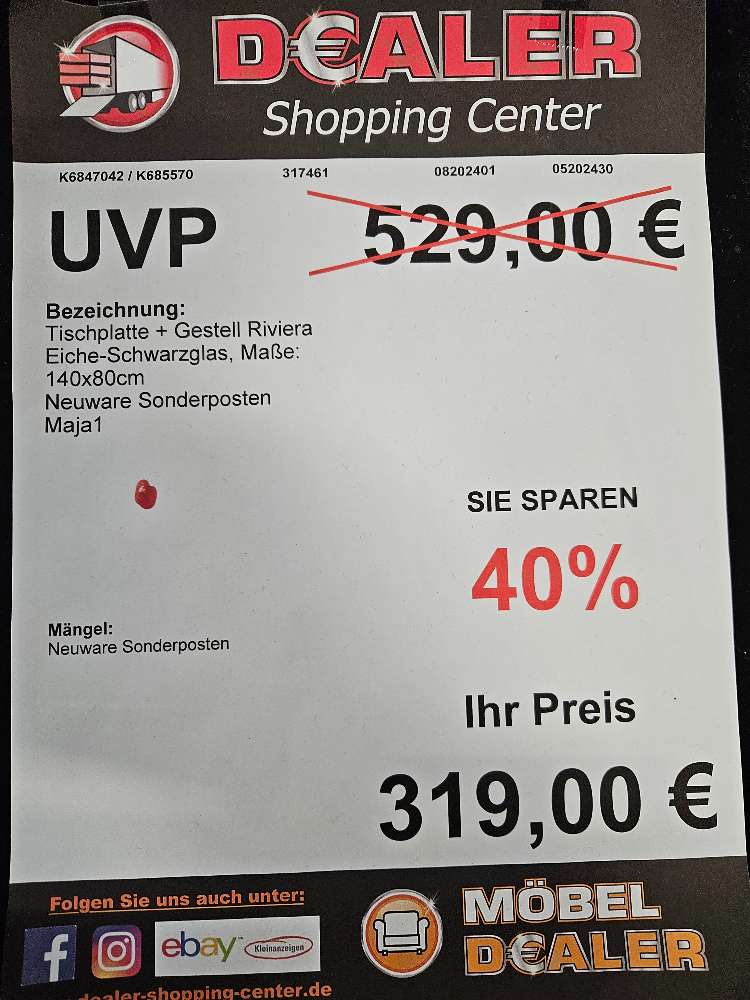 Esstisch Riviera Eiche Schwarzglas statt 529€