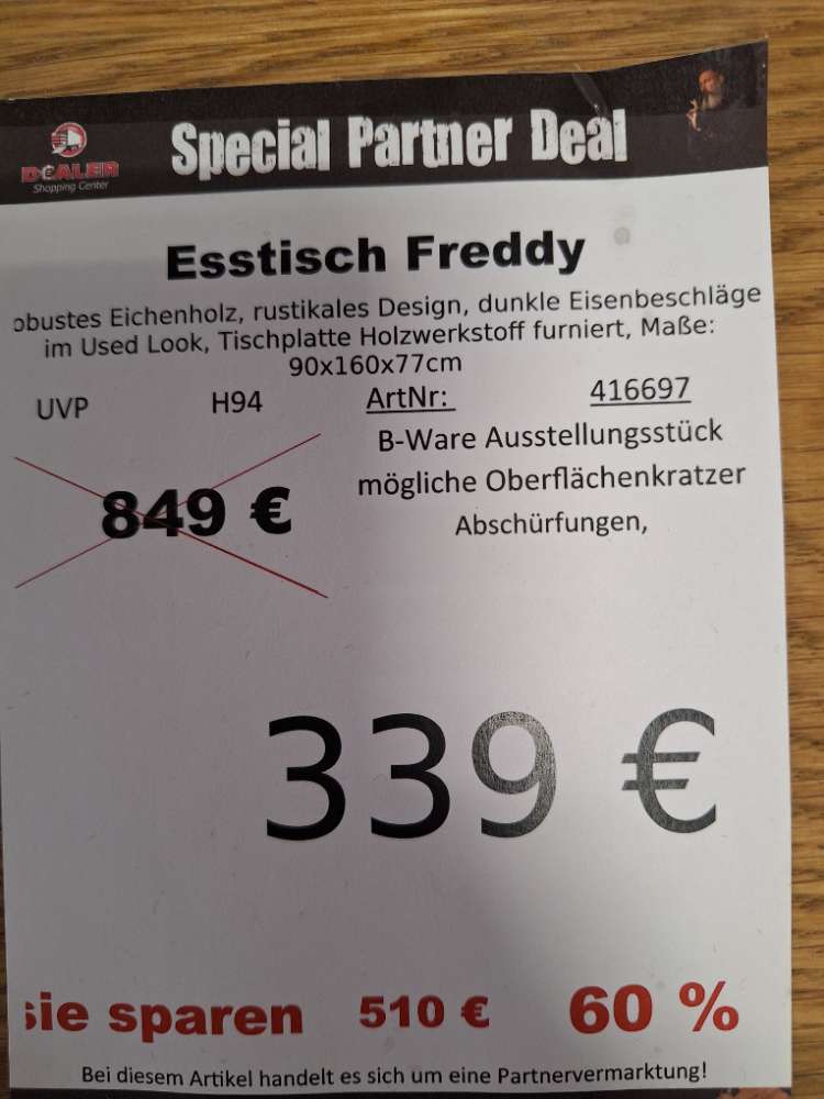 Esstisch Tisch Küchentisch Freddy Eiche teilmassiv statt 849€