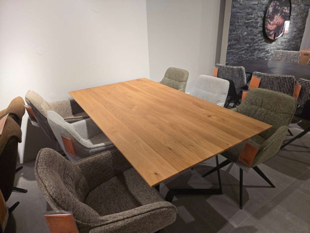 Bemerkung Der Esstisch "Tom" von MUSTERRING verbindet modernes Design mit funktionaler Eleganz. Als Ausstellungsstück präsentiert er sich in ausgezeichnetem Zustand und bietet die perfekte Gelegenheit, Qualität und Stil zu einem attraktiven Preis zu erwerben. Mit seinen großzügigen Maßen von 180x76x100 cm bietet der Tisch ausreichend Platz für gesellige Zusammenkünfte mit Familie und Freunden. Die klaren Linien und die hochwertige Verarbeitung unterstreichen sein zeitloses Design, das sich nahtlos in verschiedenste Wohnstile integrieren lässt. MUSTERRING steht für exzellente Handwerkskunst und langlebige Möbelstücke, die durch ihre Beständigkeit und ästhetische Anmut überzeugen. Egal ob für ein elegantes Dinner oder einen gemütlichen Spieleabend, der Esstisch "Tom" bietet stets die ideale Grundlage und wird zum Mittelpunkt Ihres Essbereichs. Gönnen Sie sich ein Stück exklusiver Möbelkunst, das sowohl durch Funktionalität als auch durch Schönheit besticht.