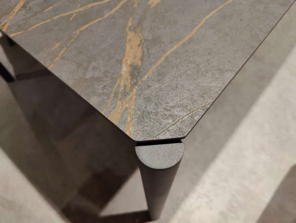 BemerkungDer Esstisch Mio plus von VENJAKOB vereint zeitlose Eleganz und moderne Funktionalität, um Ihrem Esszimmer das gewisse Etwas zu verleihen. Gefertigt aus hochwertigem Metall in einem stilvollen Anthrazit, strahlt dieser Tisch eine subtile Raffinesse aus, die durch die robuste Dekton-Tischplatte ergänzt wird. Die Oberfläche ist nicht nur strapazierfähig, sondern auch pflegeleicht, wodurch sie sich mühelos in Ihren Alltag integriert und zugleich über Jahre hinweg ihren makellosen Charme bewahrt.