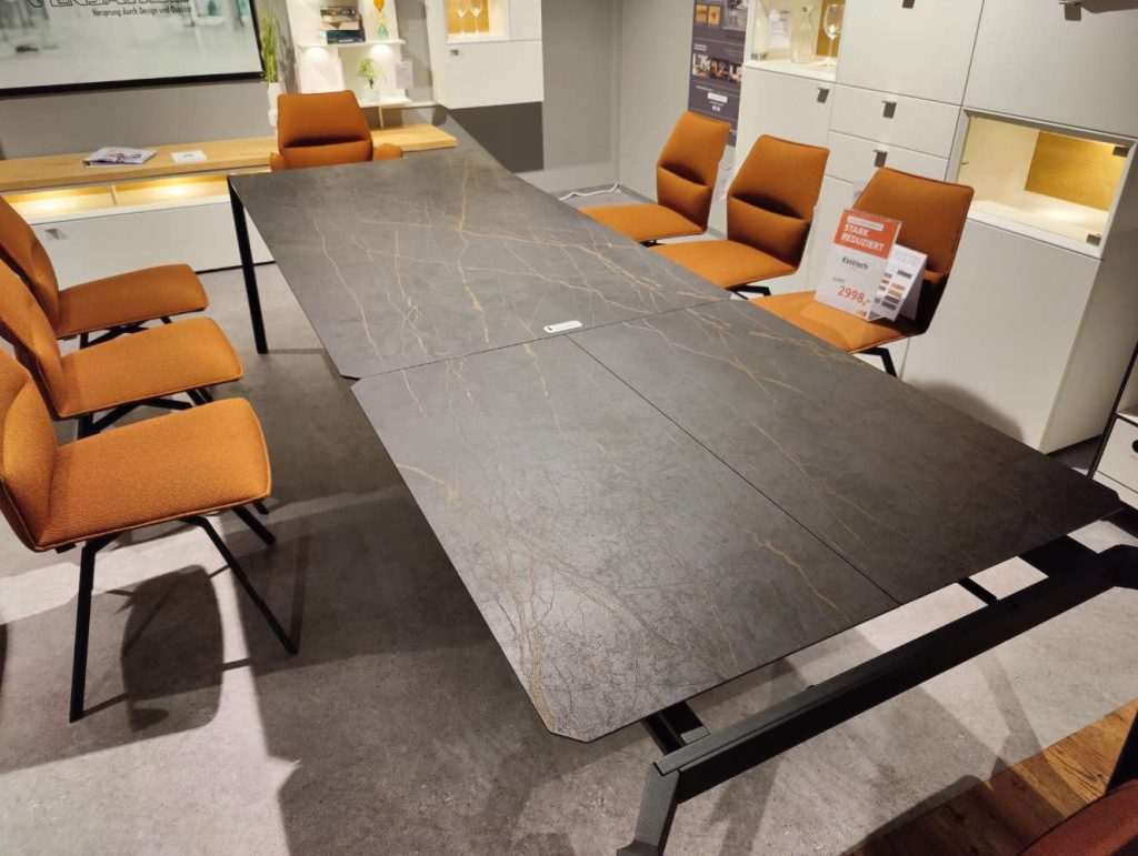 Das besondere Highlight des Mio plus ist seine clevere Ausziehfunktion, die es Ihnen ermöglicht, die Tischlänge von großzügigen 190 cm auf beeindruckende 290 cm zu erweitern. So bietet er Ihnen flexible Nutzungsmöglichkeiten, sei es für gemütliche Familienessen oder festliche Anlässe mit zusätzlichen Gästen. Die anthrazitfarbenen Metallfüße in mattem Finish runden das elegante Design ab und garantieren Stabilität sowie Langlebigkeit. Als Austellungsware präsentiert sich dieser Tisch als repräsentativer Mittelpunkt in Ihrem Zuhause, der durch seine herausragende Qualität besticht.