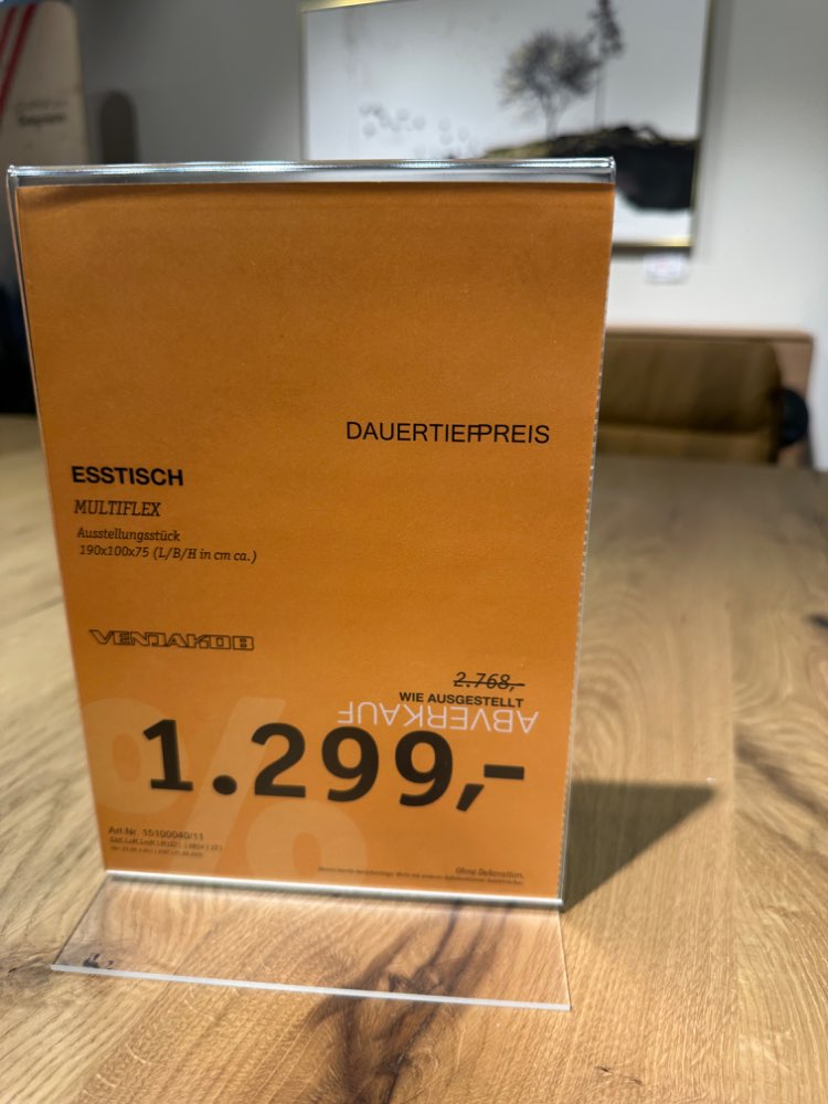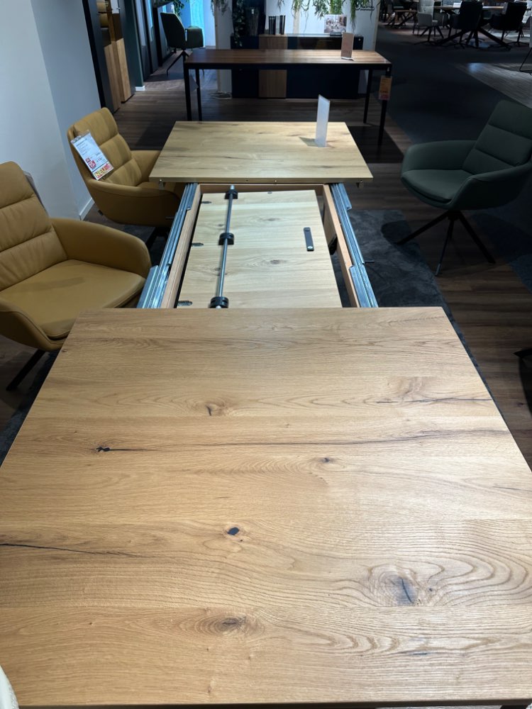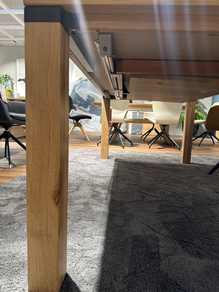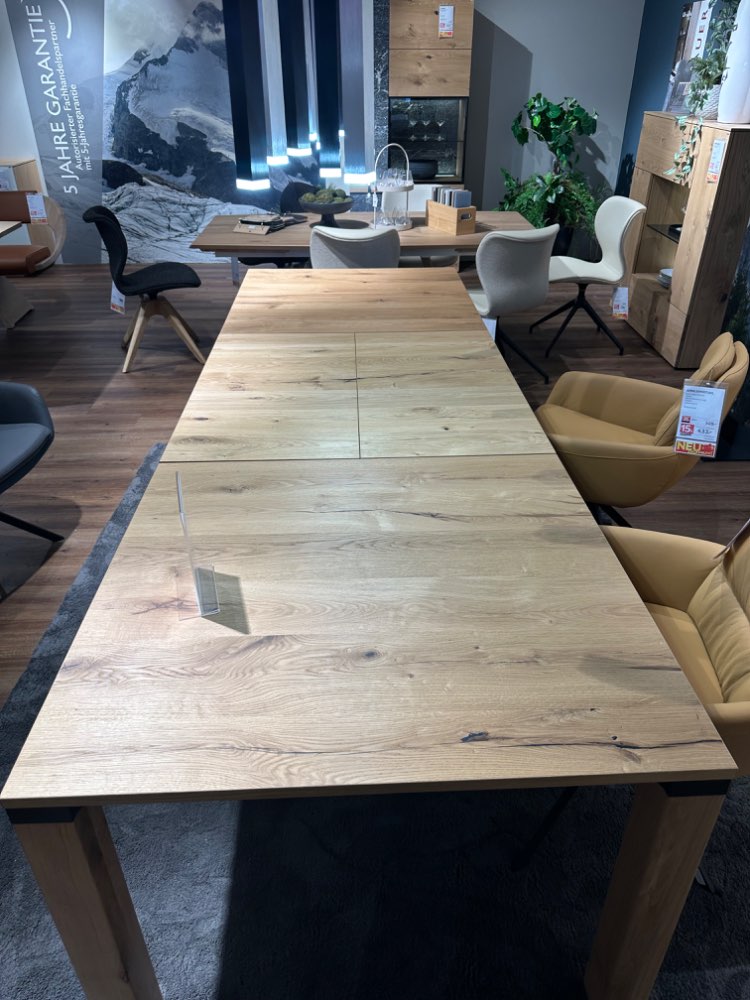 BemerkungDer aus Holz gefertigte Tisch von VENJAKOB besticht durch seine elegante Kombination aus natürlichem Charme und funktionalem Design, das jede Wohnlandschaft bereichert. Als Ausstellungsstück gefertigt, zeugt der Tisch von hoher Qualität und sorgfältiger Verarbeitung, die VENJAKOB zur Entfaltung bringt. Mit seinen großzügigen Maßen von 190-290 cm in der Länge und 100 cm in der Breite bietet er genügend Platz für gemütliche Familienessen oder gesellige Runden mit Freunden, während die Höhe von 75 cm einen angenehmen Komfort garantiert. Das natürliche Holz strahlt Wärme und Behaglichkeit aus, während das Design moderne und traditionelle Elemente harmonisch vereint. Perfekt für stilvolle Esszimmer oder als funktionales Herzstück eines Wohnbereichs, verkörpert dieser Tisch ein Stück zeitloses Handwerk, das zum Mittelpunkt jedes Raums wird.