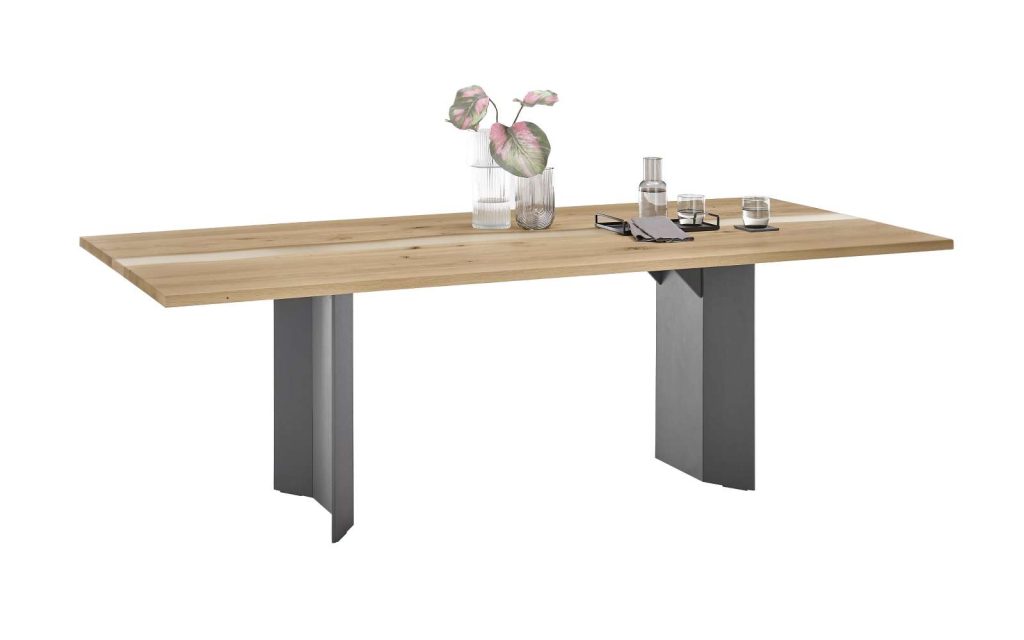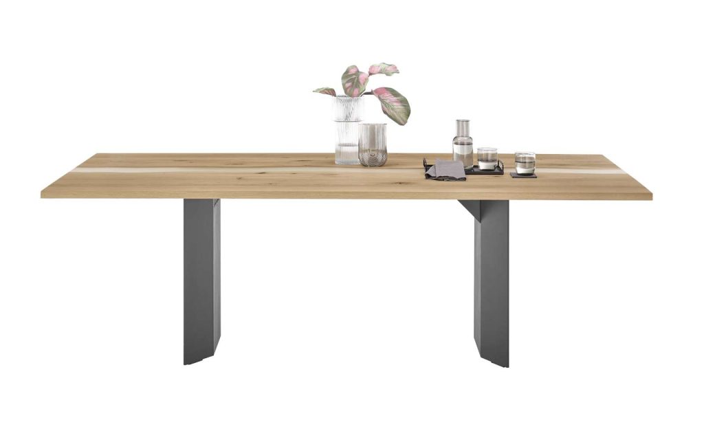 Ausführung in Kerneiche natur, feste Tischplatte ca. 38 mm, mit gerader Kante, formschönes Gestell aus Holz in anthrazit,