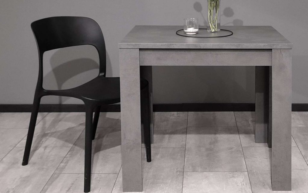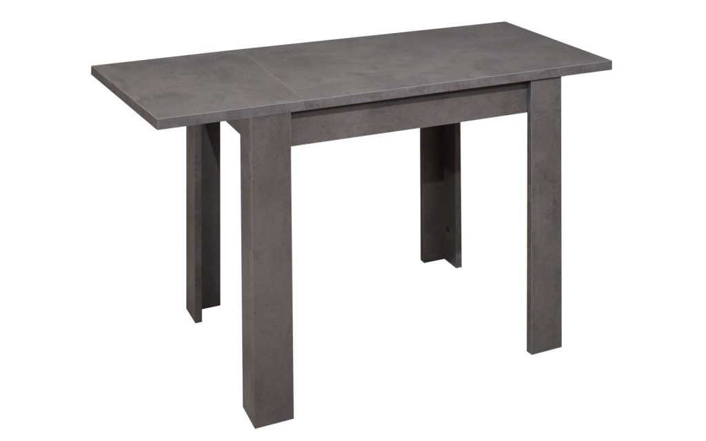 Esstisch mit Tischplatte in graphit Nachbildung, inkl. Synchronauszug mit 1 innenliegende Einlegeplatte 40 cm, B/H/T ca. 80-120 x 76 x 60 cm.