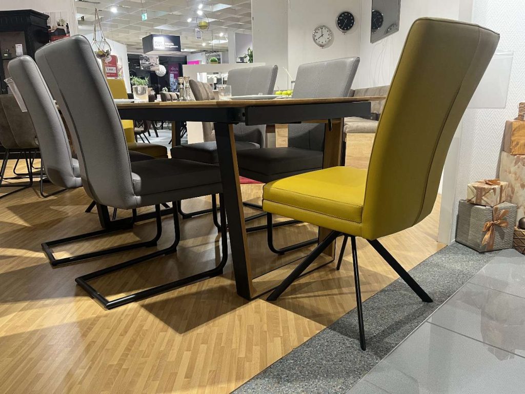 Farb-BeschreibungEsstisch in Charakter Eiche-Massiv,Armlehnenstuhl Napali Senf,Schwingstuhl Leder Napoli grau
