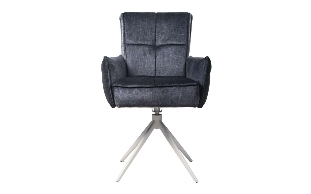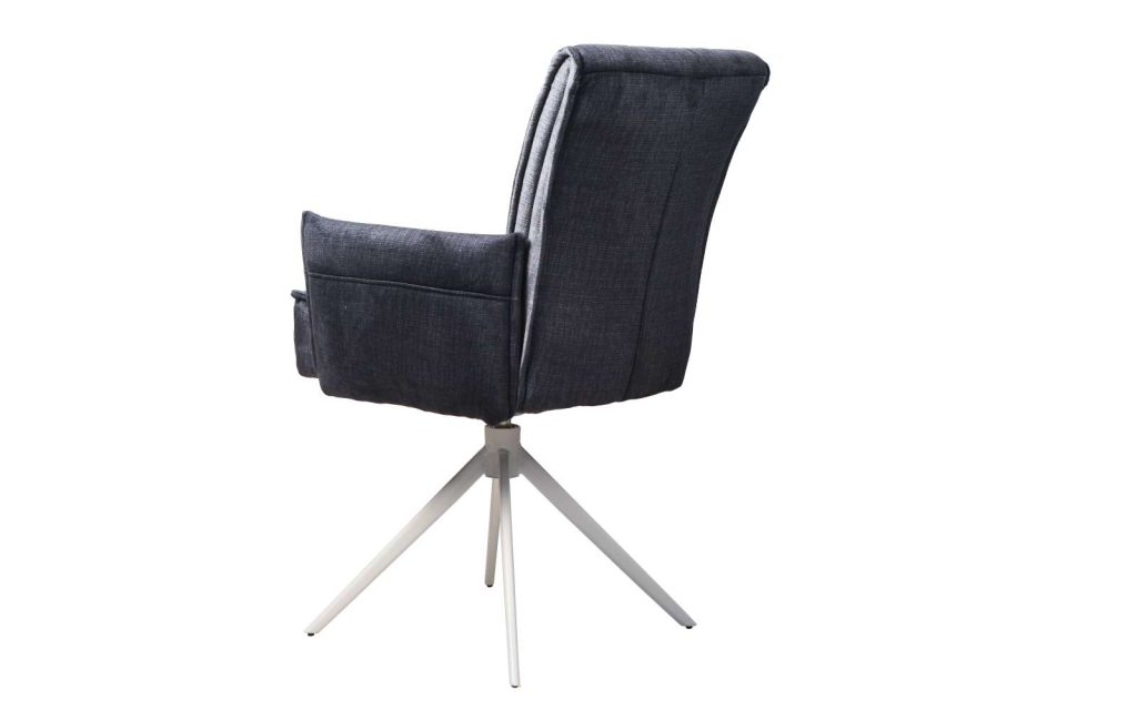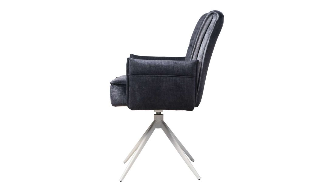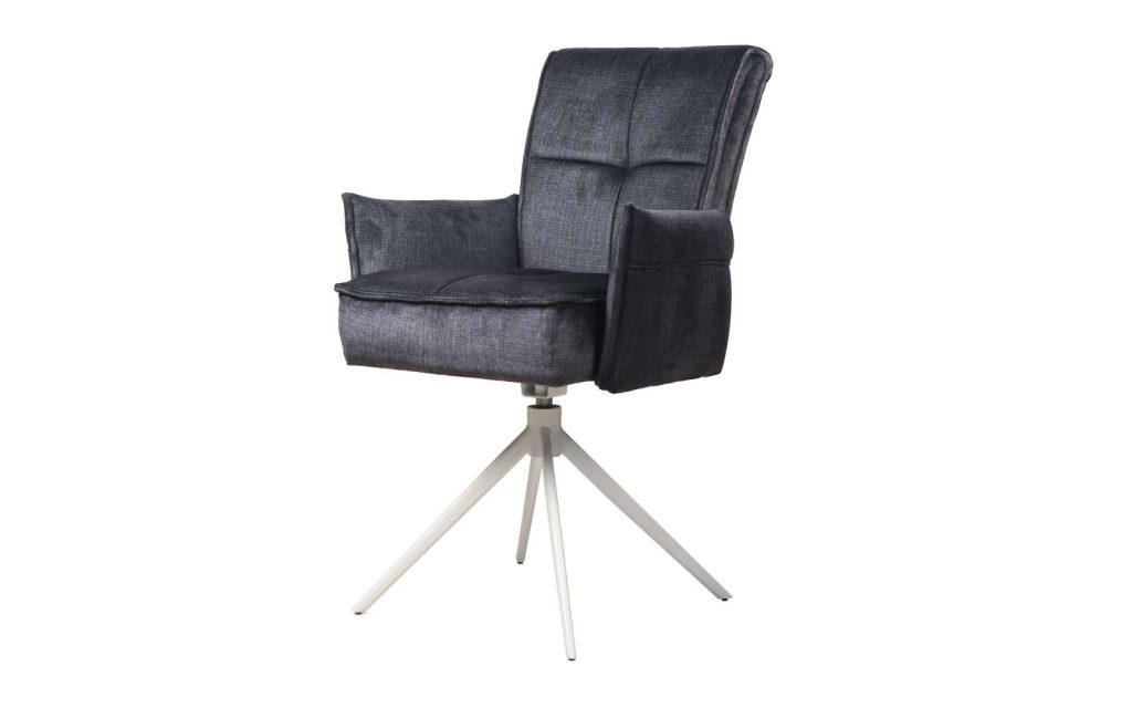 Bemerkung Armlehnenstuhl Ruben S, anthrazit/grau Ausführung mit Stoffbezug Voss in anthrazit/grau, Gestell aus Metall in weiß matt pulverbeschichtet, 360° drehbar mit Rückholfunktion, B/H/T ca. 58 x 88 x 62 cm.