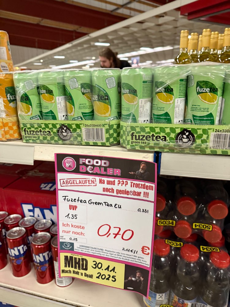 Bemerkung Food Dealer >>> beim Food Dealer verkaufen wir ab sofort eine Reihe von Lebensmitteln welche entweder das MHD schon knapp überschritten haben oder noch kurz davor sind! Aller Artikel sind noch genießbar und werden vorher regelmäßig getestet! Ware nur solange der Vorrat reicht! Bestimmte Artikel unterliegen den Jugendschutzgesetz! Alle Details sind auf den Preisschildern enthalten (Pfand, MHD, Preis pro Einheit…)! Regelmäßig neue Artikel! An beiden Standorten Zeitz und Gera. Mach deinen Deal! Hierbei handelt es sich um ein Angebot vom Dealer Shopping Center! Standort des Artikels ist das Dealer Shopping Center in Zeitz Grana Leipziger Straße 18! Wir haben hier Montag 10-16Uhr und Donnerstag und Freitag von 10-18Uhr geöffnet! Details wie technische Daten oder Schäden entnehmen Sie dem Bild mit Preis. BEZAHLUNG: Bargeld, EC-Kartenzahlung, Kreditkarte oder 0% Finanzierung mit Consors Bank. RESERVIERUNG: Bei einem längeren Anfahrtsweg und vorheriger Absprache mit dem Verkäufer vor Ort ist eine Reservierung, für die Dauer der Fahrt -maximal jedoch für 4 Stunden- möglich. Von Sonderanfragen bitten wir abzusehen. WICHTIG Bitte telefonisch erfragen ob der Wunschartikel noch verfügbar ist. Zwischenverkauf vorbehalten. Die Besichtigung, der Verkauf und die Abholung erfolgt ausschließlich bei unserem Handelspartner. Viele weitere Artikel finden sie in unserem Hauptstore in Zeitz oder online! Dealer Shopping Center , 06712 Kretzschau Zeitz Grana, Leipziger Straße 18, Ihren Ansprechpartner erreichen Sie telefonisch unter 015906377060 Öffnungszeiten : MO-FR 9:00-18:00 Uhr, SA 9:00 – 14:00 Uhr. Keine festen Öffnungszeiten im Kaufland / Abholung gegen Absprache! Versand deutschlandweit gegen Absprache möglich! Alle Inserate sind unverbindlich. Preisirrtümer und Änderungen vorbehalten. Abbildung ähnlich. Mehrere Rabattaktionen sind nicht kombinierbar. Weitere sichtbare Artikel können bei Verfügbarkeit zusätzlich erworben werden! Registereintrag: Eingetragen im Handelsregister. Registergericht: Amtsgericht Stendal Registernummer: HRB 27120 Umsatzsteuer-ID: Umsatzsteuer-Identifikationsnummer nach §27a Umsatzsteuergesetz: DE324731679 Verantwortlich für den Inhalt (gem. § 55 Abs. 2 RStV): Daniel Gottwald