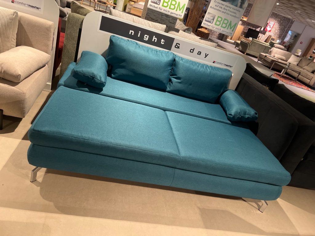 Dieses stilvolle Schlafsofa ist die ideale Lösung für alle, die eine komfortable und zugleich praktische Schlafmöglichkeit in ihrem Wohnraum integrieren möchten. Die ausgestellte Ware vereint modernes Design mit funktionaler Vielseitigkeit. Mit einer Gesamtgröße von ca. 200x80x90 cm bietet es ausreichend Platz zum Sitzen und Schlafen. Dank des Querschläfers mit Hubbeschlag verwandelt sich das Sofa im Handumdrehen in ein bequemes Bett. Der integrierte Bettkasten sorgt für zusätzlichen Stauraum und hilft, Ordnung im Wohnbereich zu halten. Die stabilen Chromfüße verleihen dem Möbelstück nicht nur eine elegante Optik, sondern bieten auch eine robuste Stabilität. Dieses Schlafsofa passt sich problemlos jeder Einrichtung an und ist ein praktischer Begleiter für Gäste oder als Alltagsbett. Ob in kleinen Wohnungen oder großen Räumen, seine durchdachte Funktionalität und ansprechende Ästhetik machen es zu einer ausgezeichneten Wahl, die sowohl Komfort als auch Stil in jeden Raum bringt.