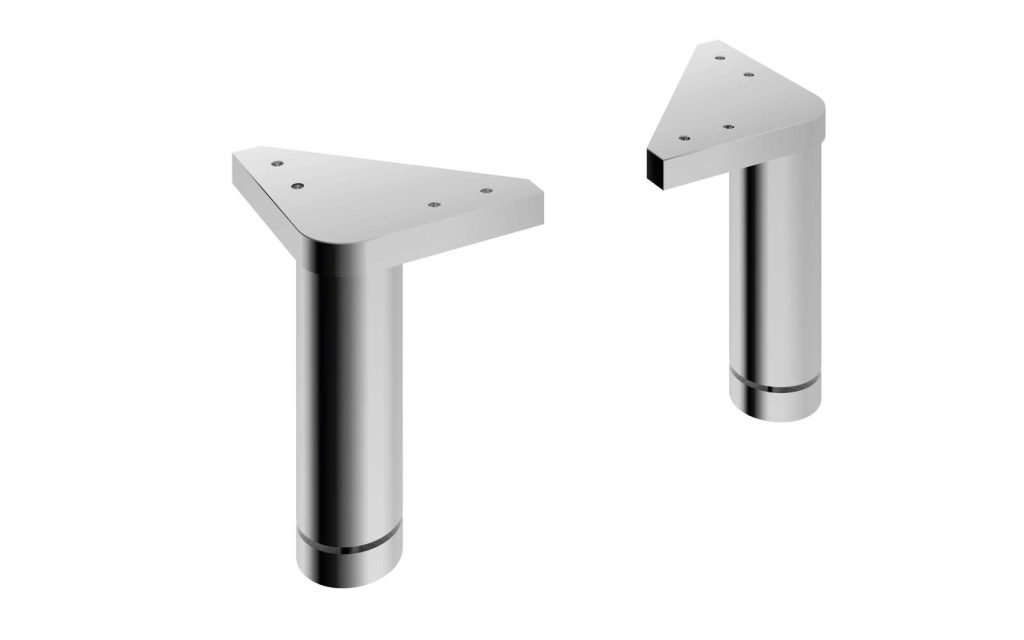 Fuß-Set aus Metall in Chromfarbig , rund, 2 Stück, höhenverstellbar, Höhe ca. 10 cm.