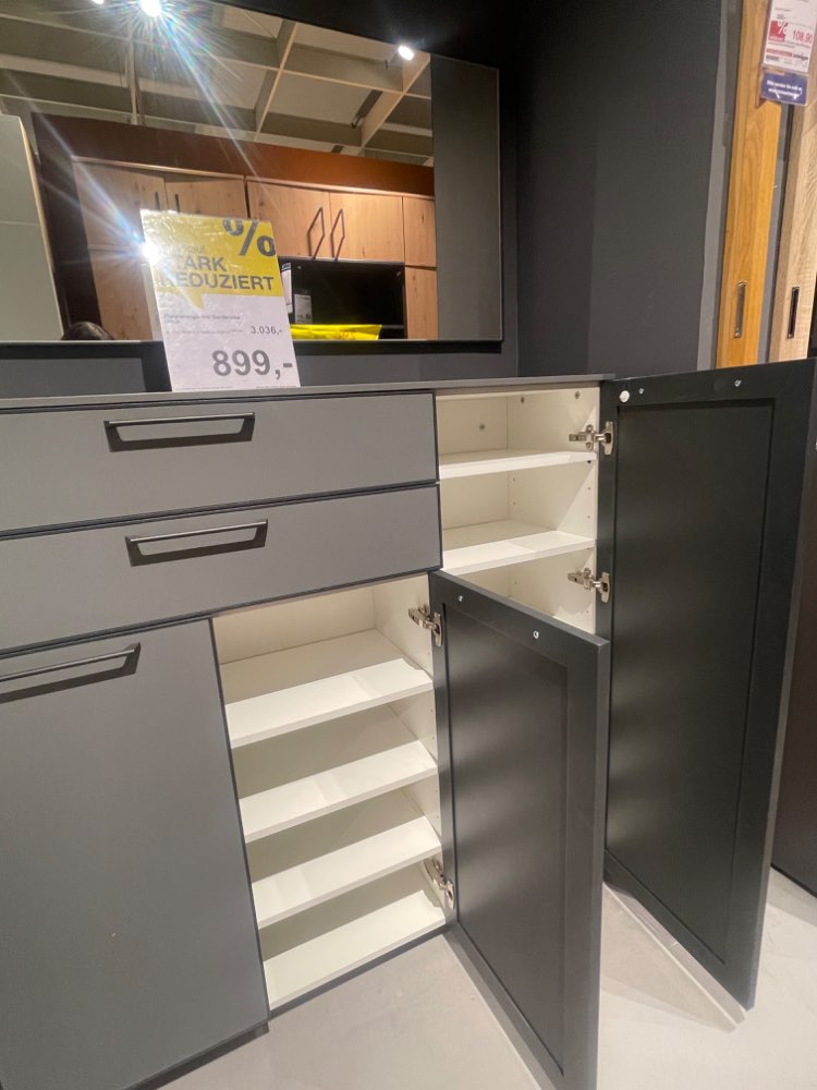 Bemerkung Das Garderoben-Set "Unica" von VOSS MOEBEL vereint Eleganz und Funktionalität in einem stilvollen Design. Mit seiner modernen Lackierung in einem ansprechenden Grau fügt sich der robuste Holz-Korpus nahtlos in jede Wohnumgebung ein. Die klaren Linien und das durchdachte Design machen "Unica" zu einem zeitgemäßen Meisterwerk, das sowohl funktional als auch ästhetisch ansprechend ist. Die anthrazitfarbenen Rahmen und Beschläge fügen einen Hauch von Raffinesse hinzu und unterstreichen das elegante Erscheinungsbild. Mit großzügigen Maßen von ca. 185 cm Breite, 192 cm Höhe und 37 cm Tiefe bietet das Set ausreichend Platz für Mäntel, Jacken und Accessoires. Ob im Flur oder Eingangsbereich – diese Garderobe schafft nicht nur Ordnung, sondern setzt auch einen stilvollen Akzent. Als Ausstellungsware bietet sie eine ideale Lösung für alle, die Wert auf Qualität und Design legen. Erleben Sie die perfekte Kombination aus Stil und Funktion mit dem Garderoben-Set "Unica". Zurbrüggen-Listenpreis: 3.036,- Euro Abverkaufspreis: 1.399,- Euro Bei eigner Abholung und Demontage: 899,- Euro