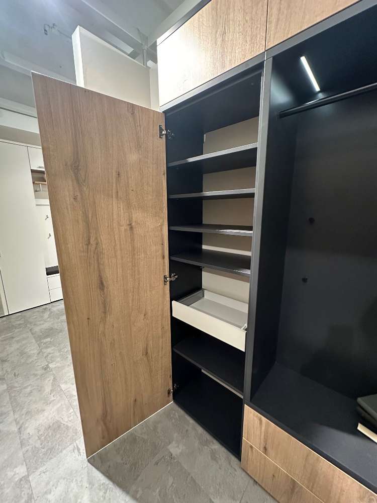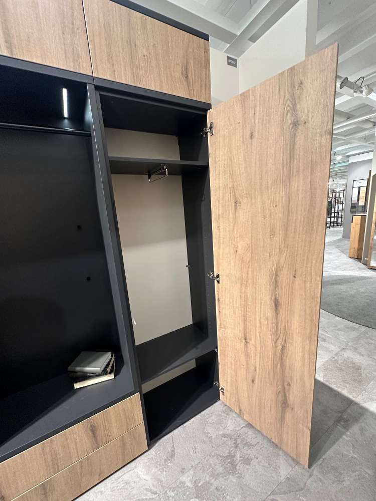 BemerkungDas Garderoben Set Valenzia von WITTENBREDER, ein elegantes Ausstellungsstück, bringt sowohl Stil als auch Funktionalität in Ihren Eingangsbereich. Mit einer beeindruckenden Gesamtgröße von etwa 200 cm Breite, 235 cm Höhe und einer Tiefe von 40 cm fügt es sich harmonisch in unterschiedlichste Raumgestaltungen ein. Die durchdachte Aufteilung umfasst je einen Hochschrank links und rechts, die bis zu einer Höhe von 201 cm reichen. Die dazugehörigen Aufsätze bieten zusätzlichen Stauraum. Der kompakte Unterstellschrank von 76 cm Breite bietet sich perfekt zur Unterbringung kleinerer Gegenstände an. Komplettiert wird das Set durch eine stilvolle Garderobe, die ebenfalls mit einem passenden Aufsatz versehen ist. Fünf Fachböden und ein Innen-Schubkasten sorgen für flexible Einsatzmöglichkeiten und Ordnung. Besondere Aufmerksamkeit verdient der Kleiderschrank mit integrierter LED-Beleuchtung, die Ihre Garderobe ins rechte Licht rückt und jedem Raum einen Hauch von zeitlosem Design verleiht.