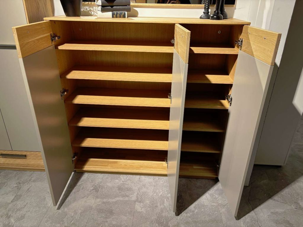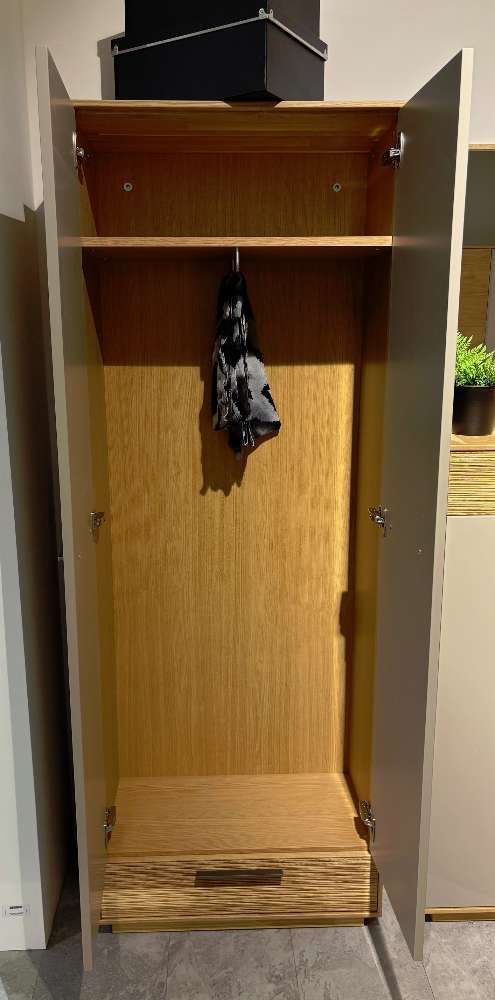 Die Front aus Lack in einem edlen Taupe-Ton harmoniert wunderbar mit dem Korpus in Eiche bianco teilmassiv, wodurch eine moderne und warme Atmosphäre geschaffen wird. Die qualitative Verarbeitung und die geschmackvolle Materialwahl machen das Loveno-Garderoben-Set zu einem langlebigen Begleiter in Ihrem Zuhause. Die klare Linienführung und das zeitlose Design fügen sich nahtlos in jedes Wohnkonzept ein, während die praktischen Extras Komfort und Ordnung in Ihr tägliches Leben bringen. Entdecken Sie mit Loveno von VOSS MOEBEL eine stilvolle Möglichkeit, Ihr Zuhause zu organisieren und stilvoll zu gestalten.