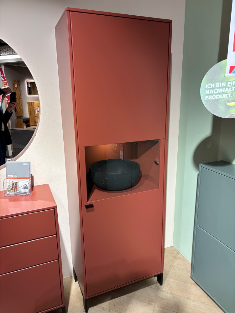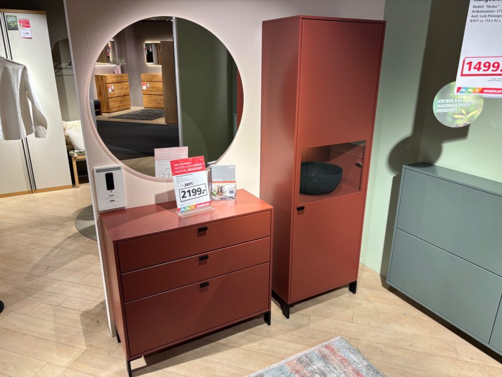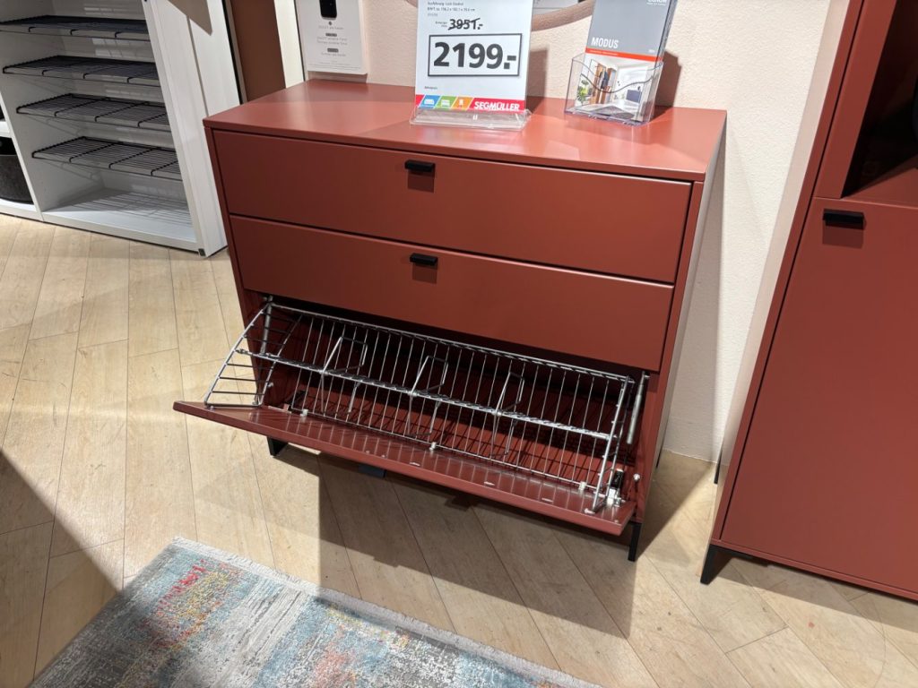 zeitlose moderne Garderoben Kombi in Lack oxydrot bestehend aus Schuhschrank, Wandspiegel mit LED Beleuchtung und Schuhschrank