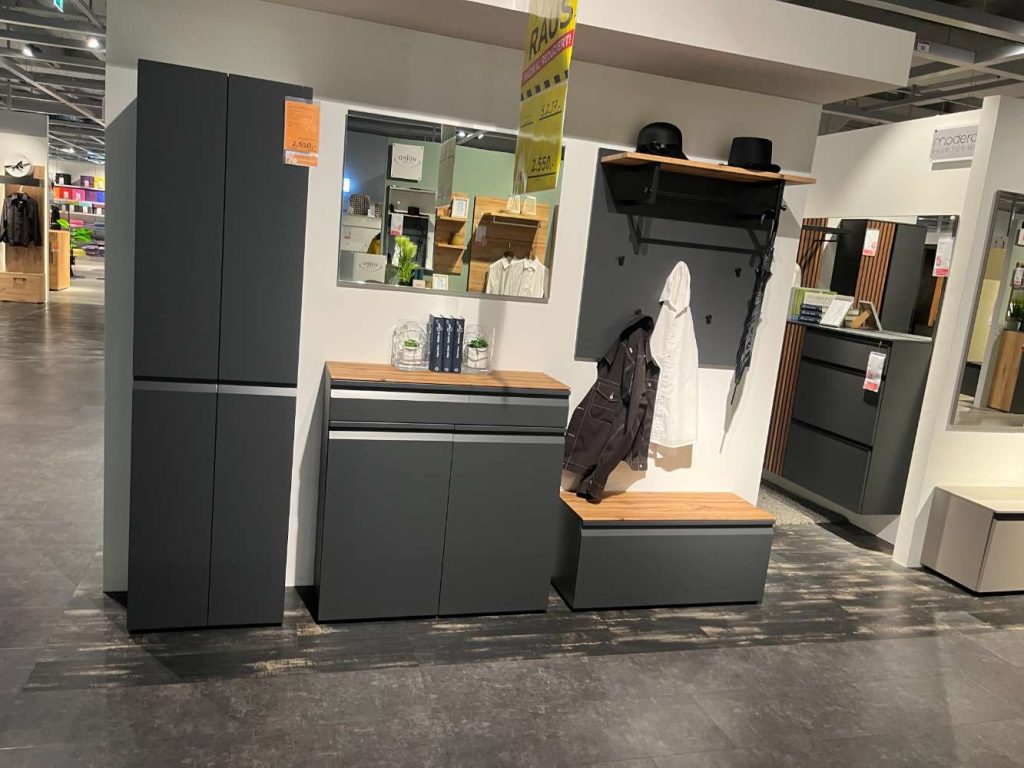 Schuhschrank: 93x96x36; Wandspiegel: 88x64x3; Garderobenbank: 93x42x36; Paneel: 88x88x29; Schrank: 52x192x36