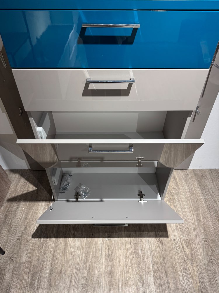B/H/T: ca. 180x199x35 Farben: Grau, Petroleum Griffe: Chrom