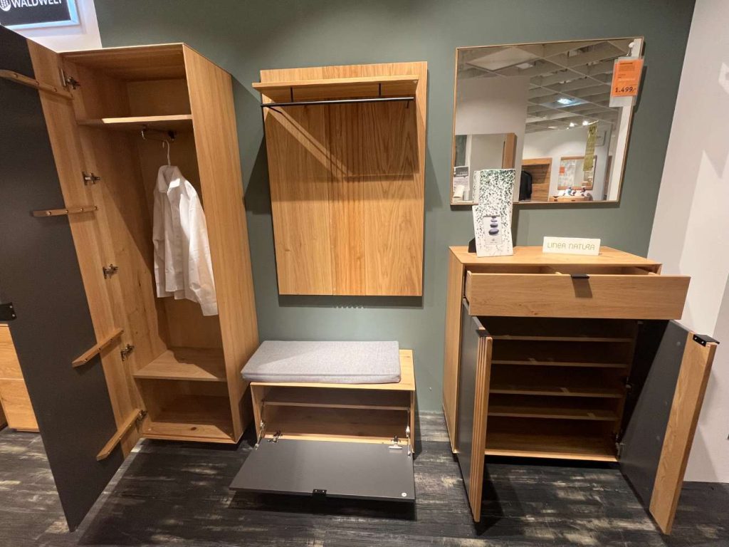 Bemerkung Das Garderoben Set Timour Linea Natura bringt eine stilvolle und zugleich praktische Lösung für Ihr Zuhause. Als Ausstellungsware bietet dieses Set eine ideale Kombination aus Funktionalität und ansprechendem Design für Ihren Eingangsbereich. Gefertigt mit einem Auge fürs Detail, vereint es natürliche Materialien und moderne Linienführung, um einen warmen und einladenden Raum zu schaffen. Dieses Set ist darauf ausgelegt, all Ihre Bedürfnisse zu erfüllen. Es bietet ausreichend Stauraum und clevere Aufbewahrungsmöglichkeiten, um Jacken, Mäntel und Accessoires ordentlich unterzubringen. Sein durchdachtes Design erleichtert den Alltag, indem es das tägliche Chaos reduziert und dabei hilft, den Flur stilvoll und organisiert zu halten. Das zeitlose Design von Timour Linea Natura fügt sich harmonisch in verschiedenste Wohnstile ein und schafft eine einladende Atmosphäre bereits beim Betreten Ihres Zuhauses.