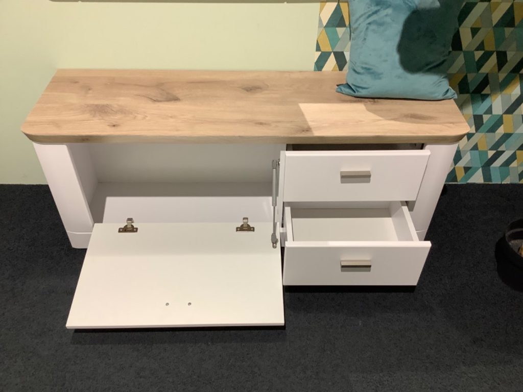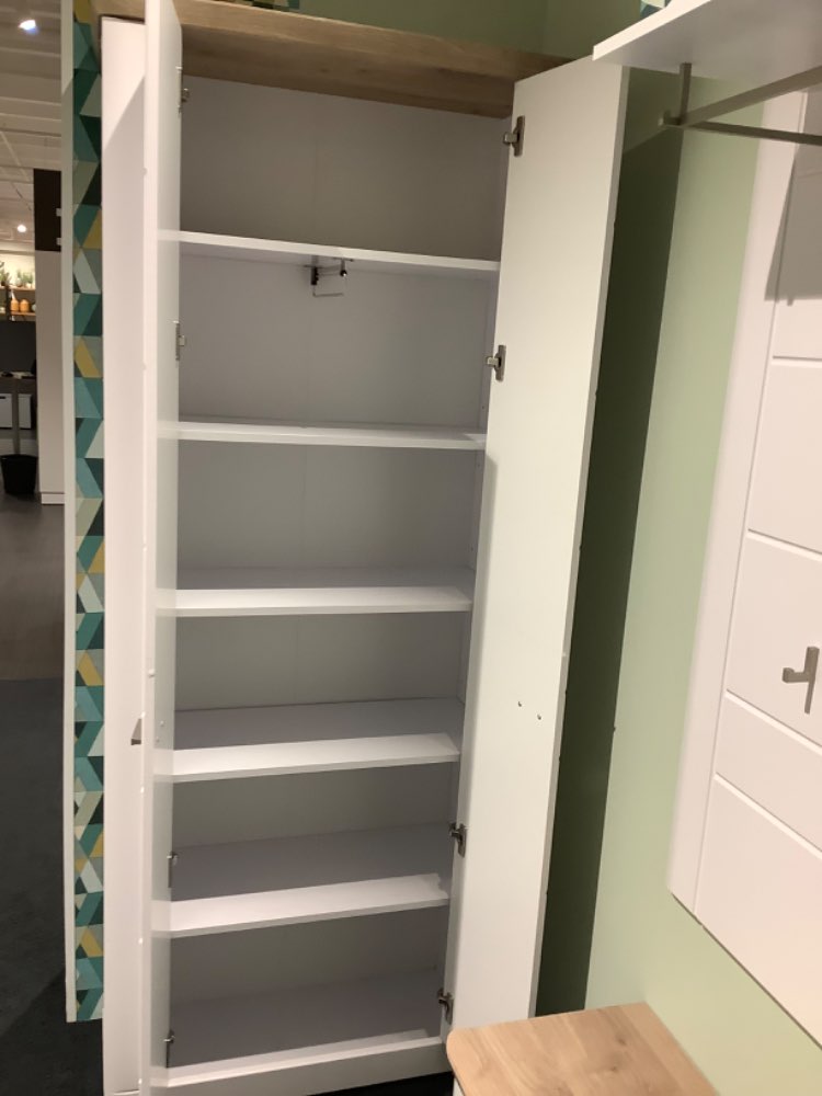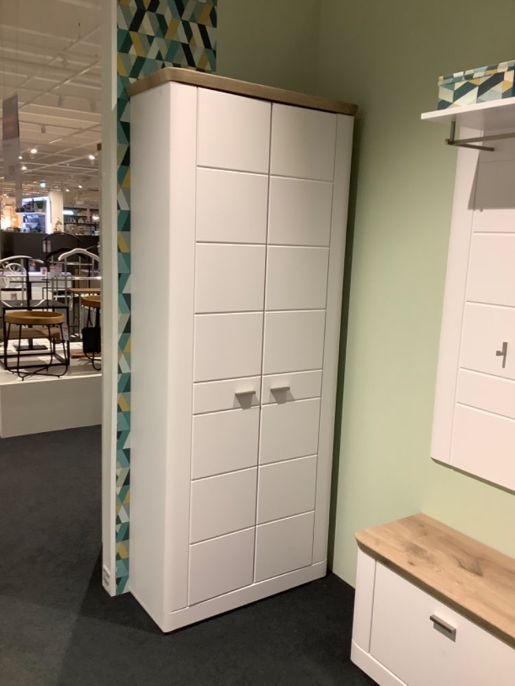Bemerkung Weiß matt, Absetzungen Nox Oak Nachbildung Bestehend aus: Bank B/H/T ca.: 125/50/37cm Paneel B/H/T ca.: 125/134/32 cm Garderobenschrank B/H/T ca.: 85/205/37cm