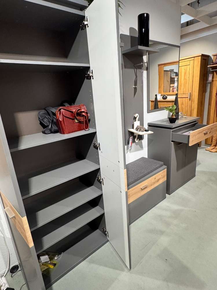 Bemerkung Die Garderobe Wilm/Teneriffa von MCA ist ein exklusives Möbelstück, das als Austellungsware geschmackvoll in Szene gesetzt wurde. Die klare Linienführung und die dezente Farbgebung verleihen der Garderobe eine zeitlose Eleganz, die sich harmonisch in unterschiedliche Einrichtungsstile integrieren lässt. Hinter den Türen und in den Schubladen verbirgt sie viel Stauraum, der ideal für die Aufbewahrung verschiedenster Gegenstände genutzt werden kann.