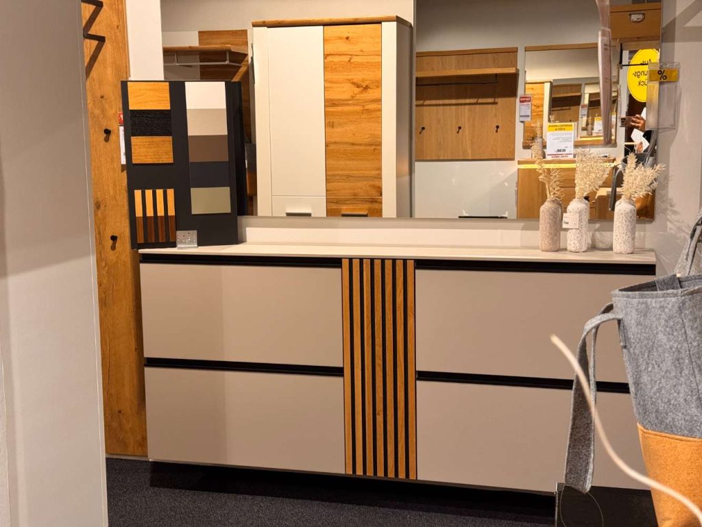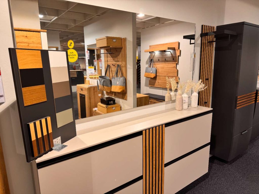 inkl. Spiegel & Rillenpaneel Wildeiche bianco