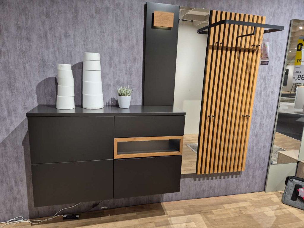 Mit großzügigen Maßen von ca. 212 cm in der Breite, 164,5 cm in der Höhe und 35 cm in der Tiefe bietet das FOX Set ausreichend Platz für die Aufbewahrung von Jacken, Mänteln und Accessoires. Die integrierte LED-Beleuchtung setzt nicht nur das Möbelstück selbst, sondern auch Ihren Eingangsbereich ins rechte Licht und sorgt für eine angenehme Atmosphäre. Als Ausstellungsware präsentiert sich das FOX Garderoben Set als ein Produkt, das Design, Funktionalität und Qualität harmonisch vereint.