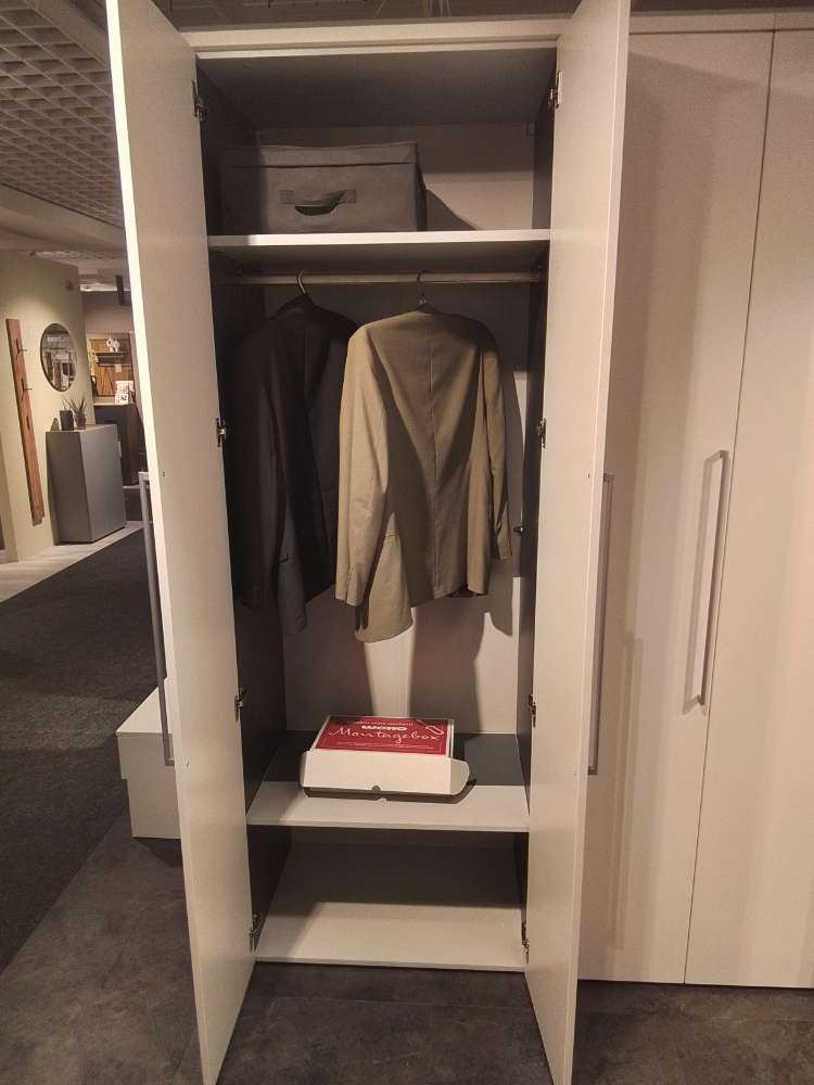AusführungGarderobenkombination Come In Anthrazit/weiß, ca. 233cm hoch, linke Seite ca. 194cm breit und ca. 55cm tief, rechte Seite ca. 173cm breit und ca. 35cm tief inkl. Inneneinteilung wie Abgebildet