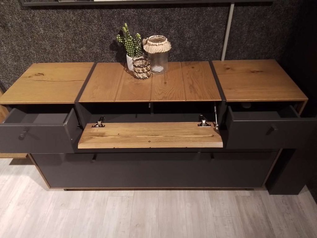 Front Schiefer schwarz, Korpus Raucheiche Furnier ca. 200x192x40cm