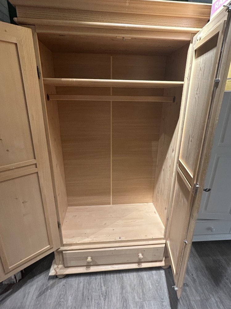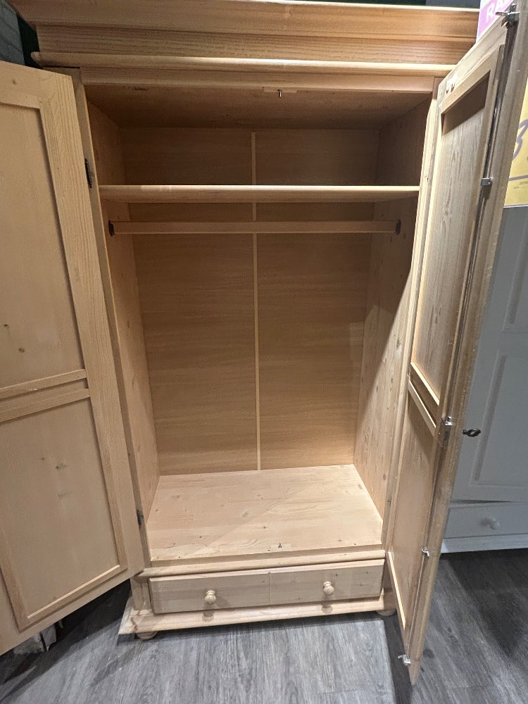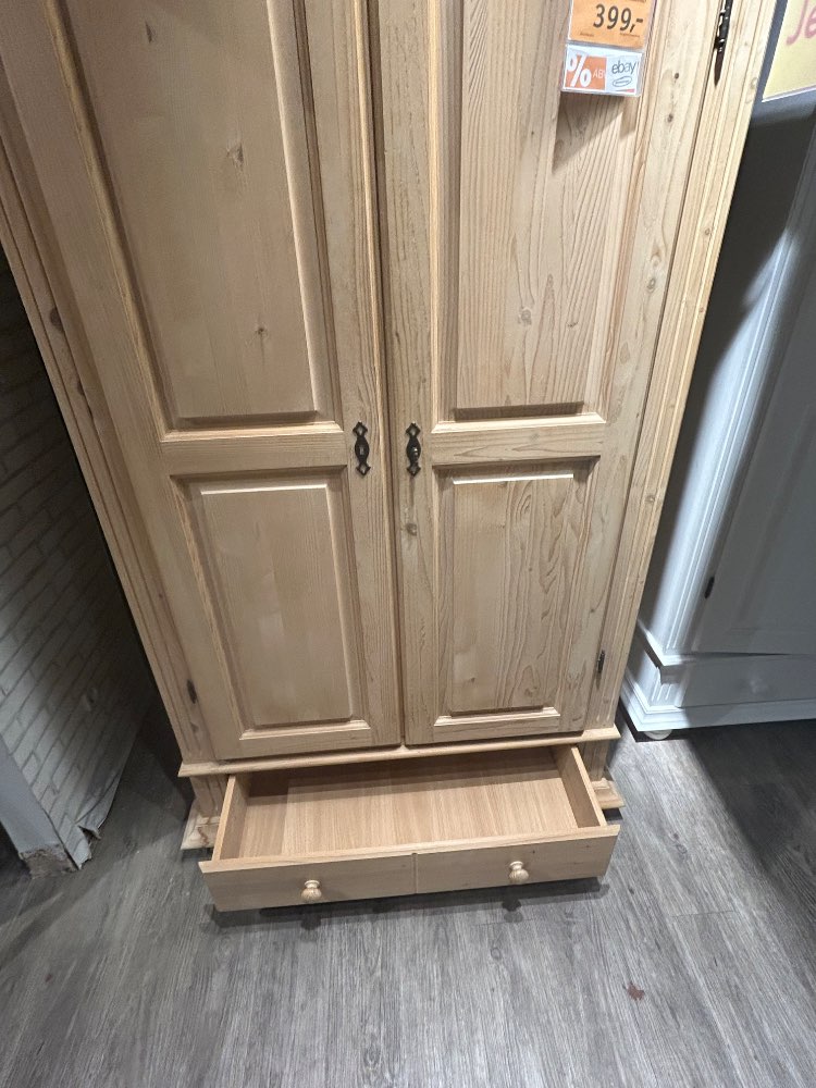 B / H / T: 110 x 192 x 58 cm Türen: - Art: Drehtür - Anz.: 2 - Soft-Close-System: Nein - Türdämpfung: Nein - Versperrbar: Ja Griffe: - Art: Schlüssel - Farbe: schwarz Einlegeböden: - Anz.: 1 - Max. Belastbarkeit pro Boden: 15 kg Schubladen: - Anz.: 1 - Soft-Close-System: Nein - Komfort-/Vollauszug: Nein Inkl.: Kleiderstange Farbe: Fichte