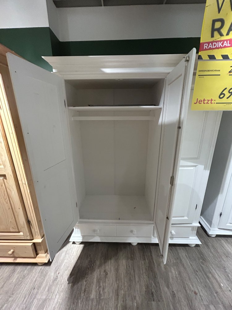 B / H / T: 154 x 192 x 58 cm Türen: - Art: Drehtür - Anz.: 3 - Soft-Close-System: Nein - Türdämpfung: Nein - Versperrbar: Ja Griffe: - Art: Knopfgriffe / Schlüssel - Farbe: weiß / schwarz Einlegeböden: - Anz.: 4 - Max. Belastbarkeit pro Boden: 5 kg Schubladen: - Anz.: 2 - Soft-Close-System: Nein - Komfort-/Vollauszug: Nein Farbe: Weiß