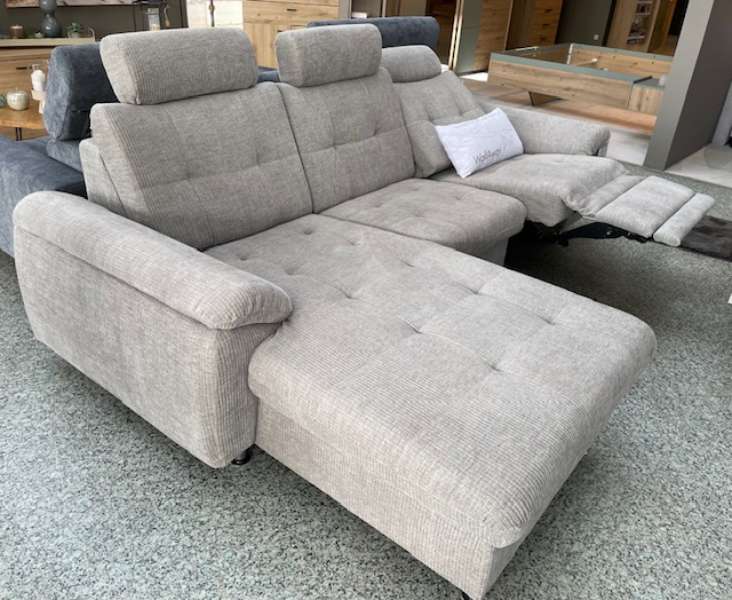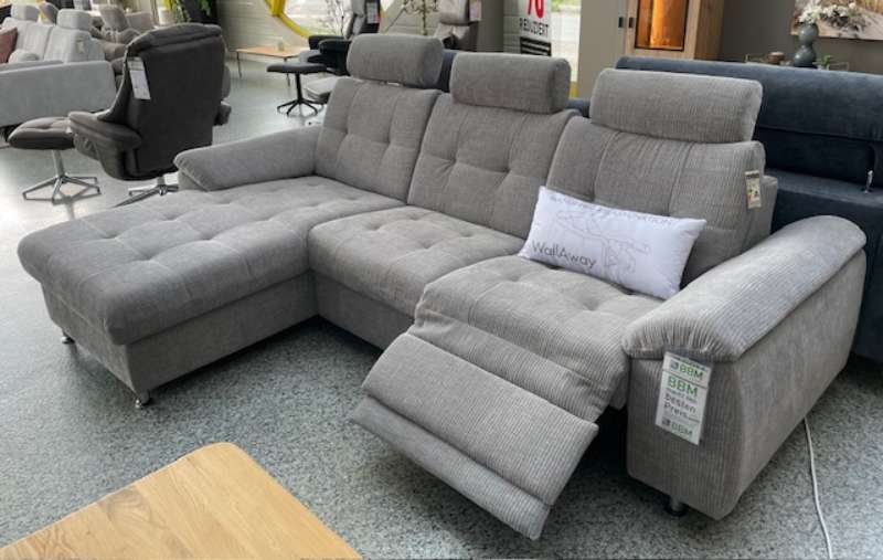 Diese exquisite Polstergarnitur vereint modernen Komfort mit eleganten Designelementen und bietet ein luxuriöses Sitz- und Entspannungserlebnis. Die Kombination aus einer großzügigen Stellfläche von etwa 169x256 cm und den stilvollen Chrom-Metallfüßen verleiht Ihrem Wohnbereich sofort einen Hauch von Raffinesse. Die integrierte motorische Relaxfunktion ermöglicht es Ihnen, mit nur einem Knopfdruck in eine bequeme Position zu gleiten und den Alltag hinter sich zu lassen. Besonders hervorzuheben sind die verstellbaren Kopfstützen, die Ihnen zusätzlichen Komfort bieten, indem sie Ihre Nacken- und Kopfhaltung optimal unterstützen. Ob für entspannte Abende allein oder in Gesellschaft, diese Polstergarnitur mit Canape lädt zum Verweilen ein und wird schnell zum zentralen Mittelpunkt Ihres Wohnzimmers. Genießen Sie die gelungene Kombination aus Funktionalität und gehobenem Design, die jeden Raum aufwertet.